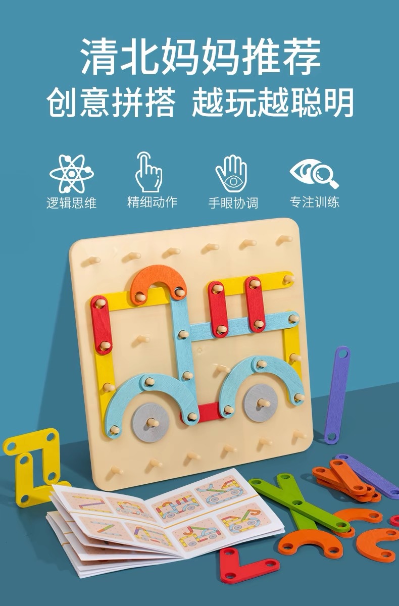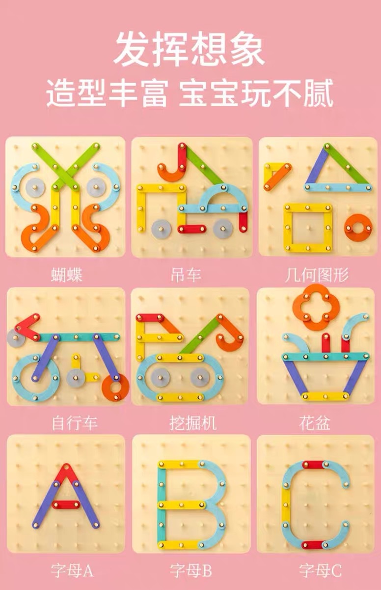 몬테소리 품종 기둥 장난감 세트 유아 교육 도구 조립 보드 어린이 퍼즐 어린이 소녀 빌딩 블록 3-6 세스토어 가기