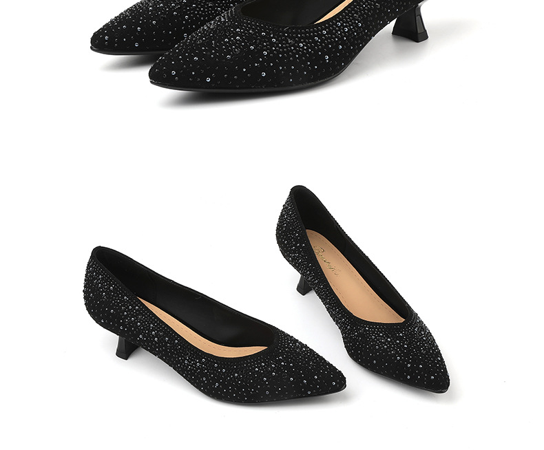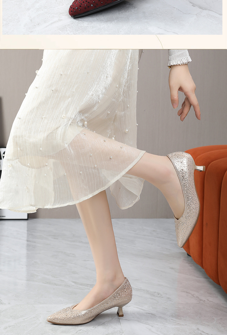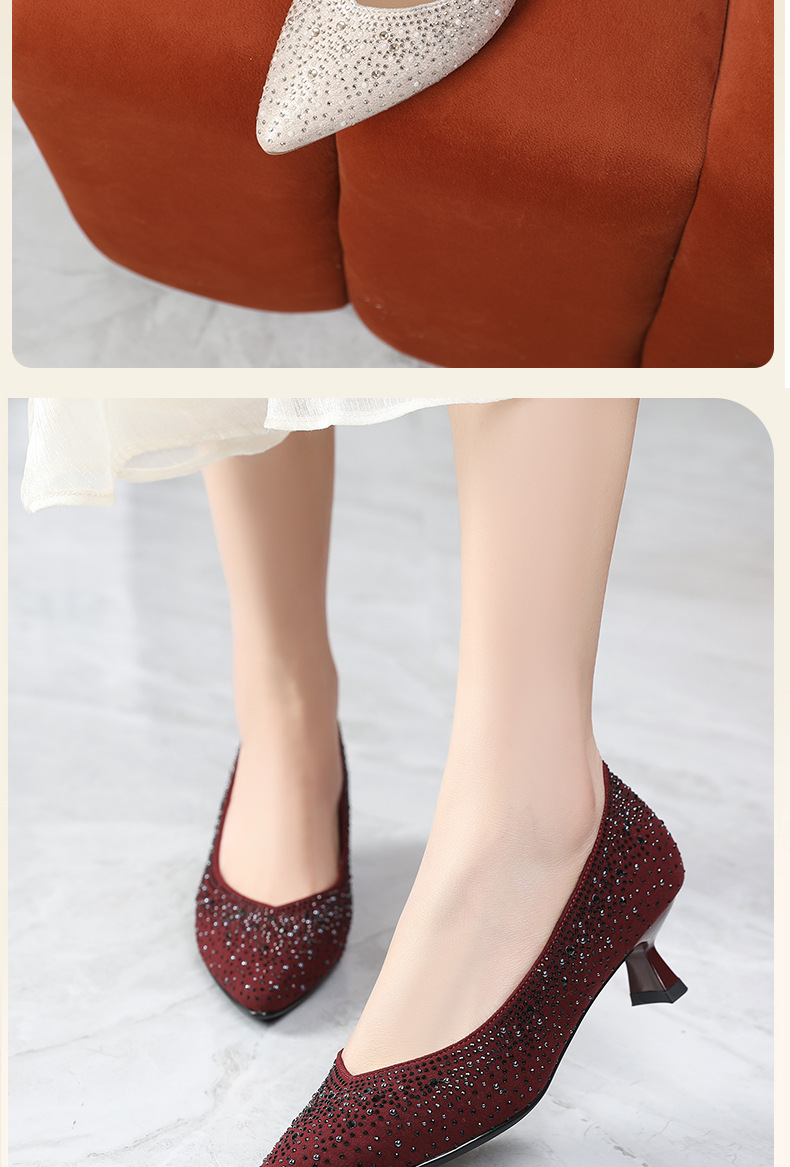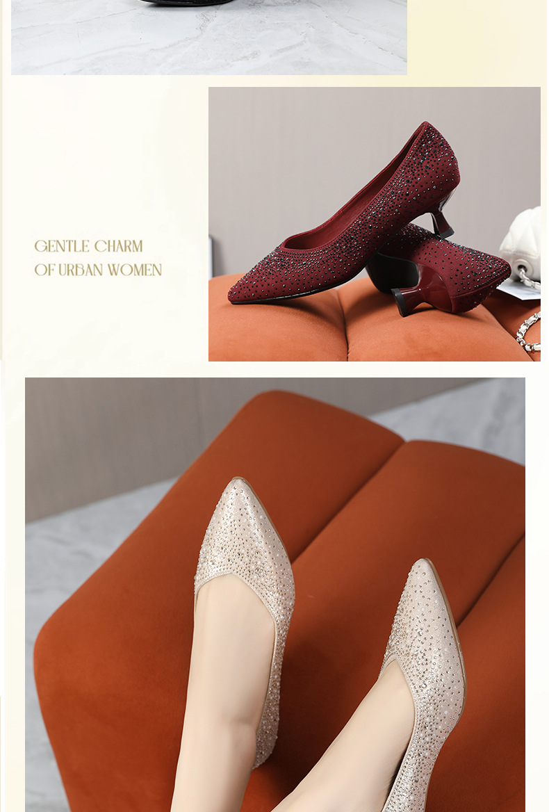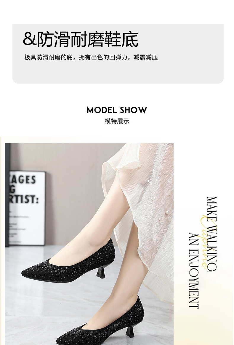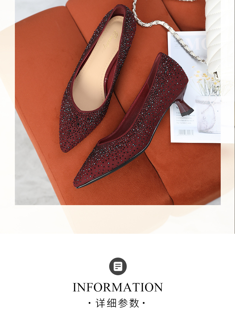 뾰족한 미드 힐 신발 여성의 2024 봄과 가을 유럽과 미국 스타일 핫 드릴링 하이힐 편안한 패션 섹시한 여성 싱글 신발스토어 가기