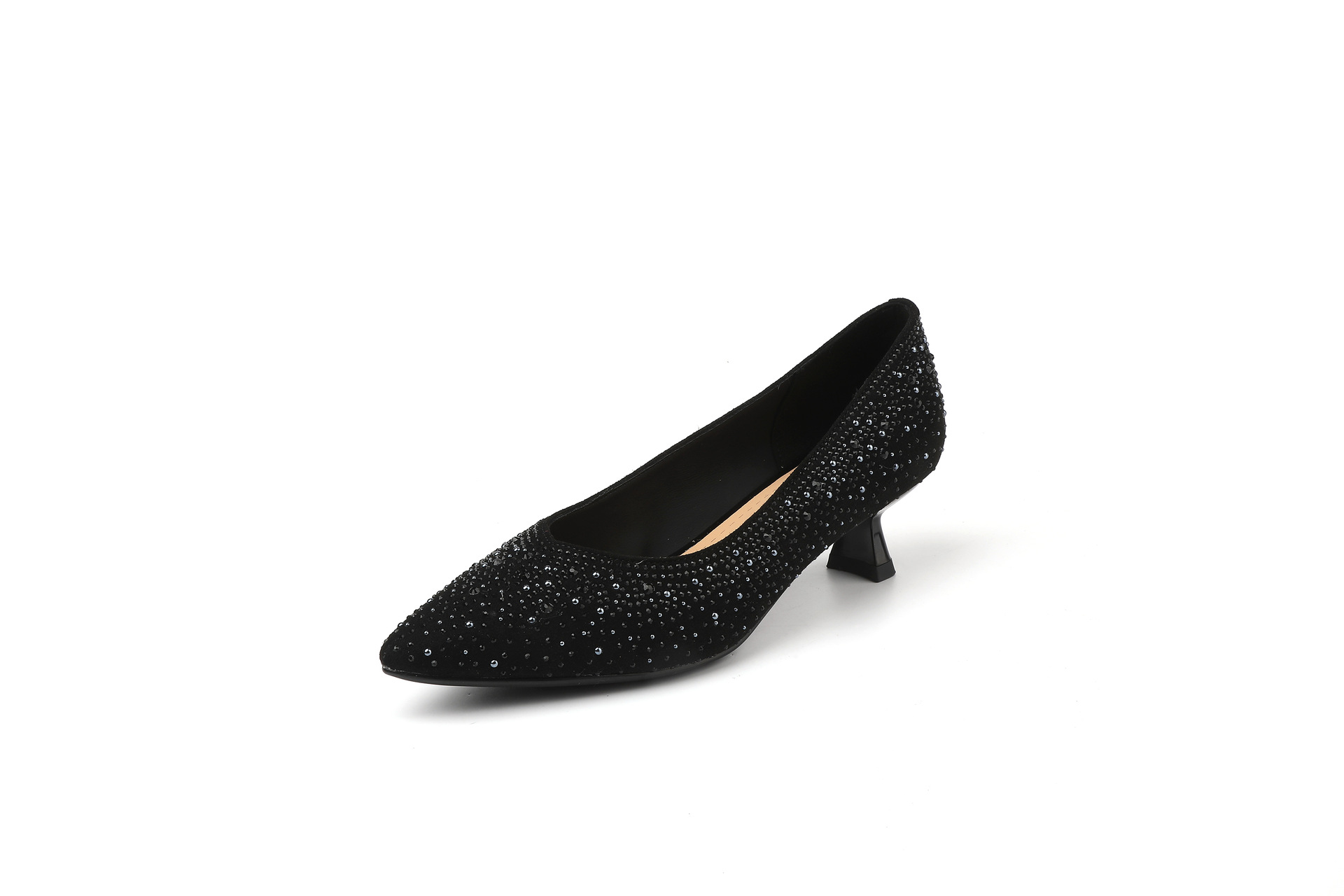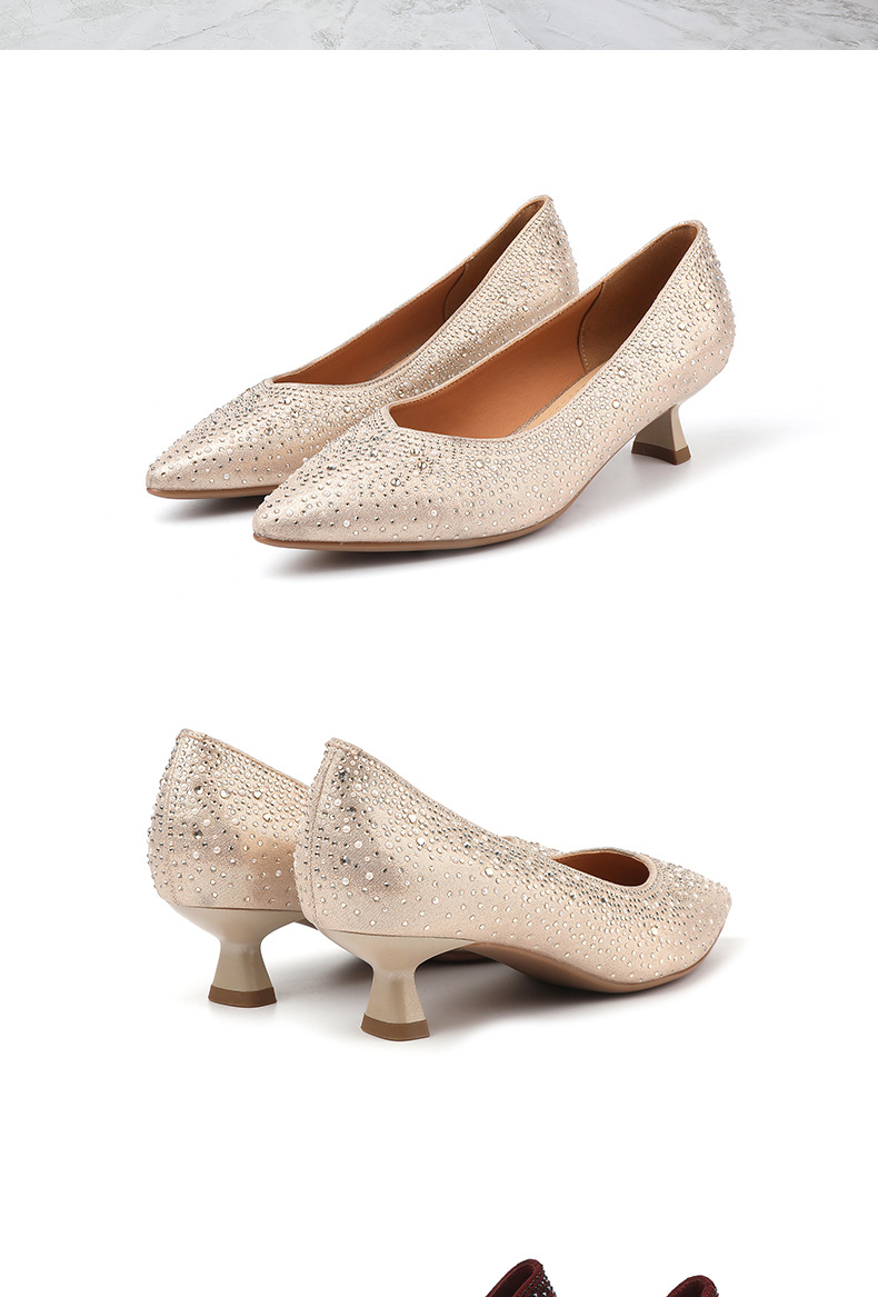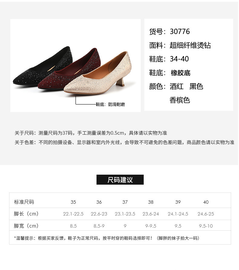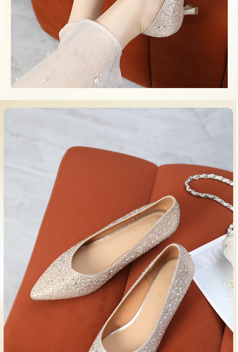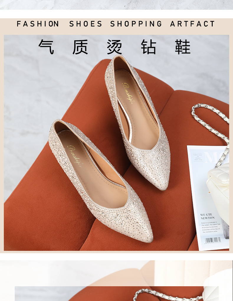 뾰족한 미드 힐 신발 여성의 2024 봄과 가을 유럽과 미국 스타일 핫 드릴링 하이힐 편안한 패션 섹시한 여성 싱글 신발스토어 가기