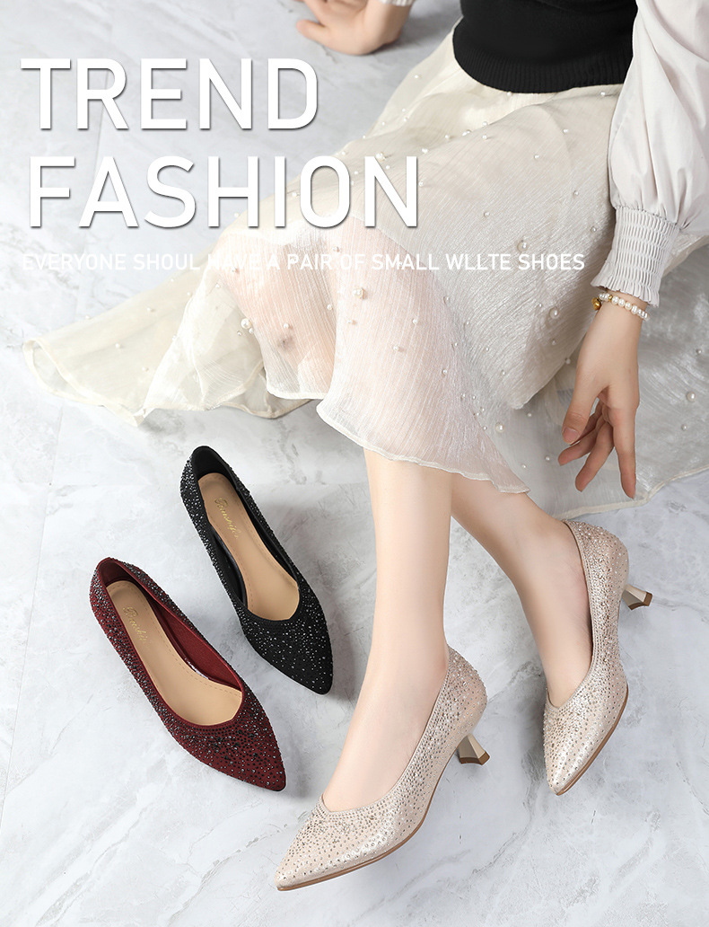 뾰족한 미드 힐 신발 여성의 2024 봄과 가을 유럽과 미국 스타일 핫 드릴링 하이힐 편안한 패션 섹시한 여성 싱글 신발