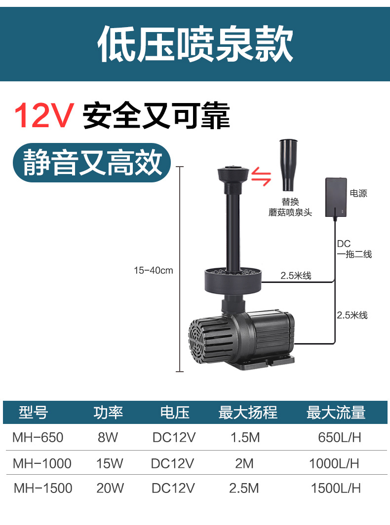 MH 새로운 분수 펌프 물고기 풀 바위 세라믹 물고기 탱크 수영장 순환 필터 분수 펌프 잠수정 펌프 저압 DC