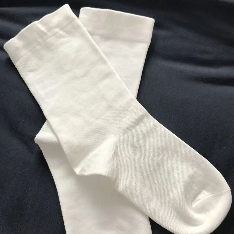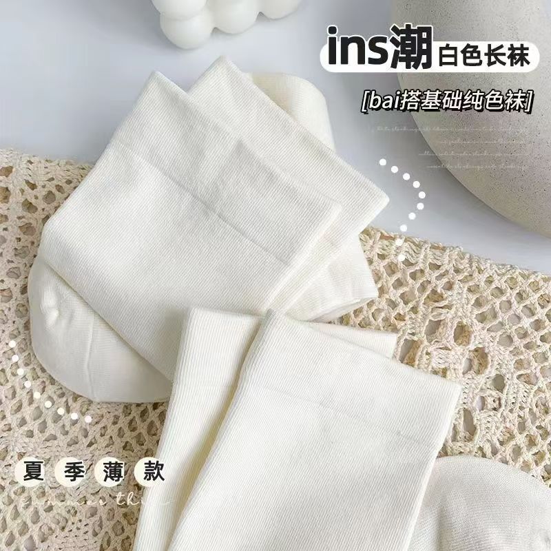 TikTok 같은 스타일 흰색 뼈없는 양말 여성의 봄과 여름 중간 튜브 양말 Ins 간단한 대학 스타일의 일본 단색 스택 양말