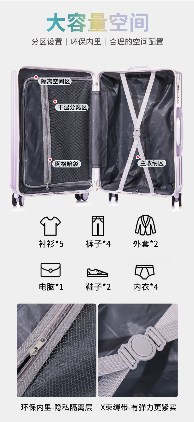 [엄선된 공장] 그라데이션 색상 여행가방 여성용 고급스러운 캐리어 남성용 대용량 학생용 비밀번호 여행가방