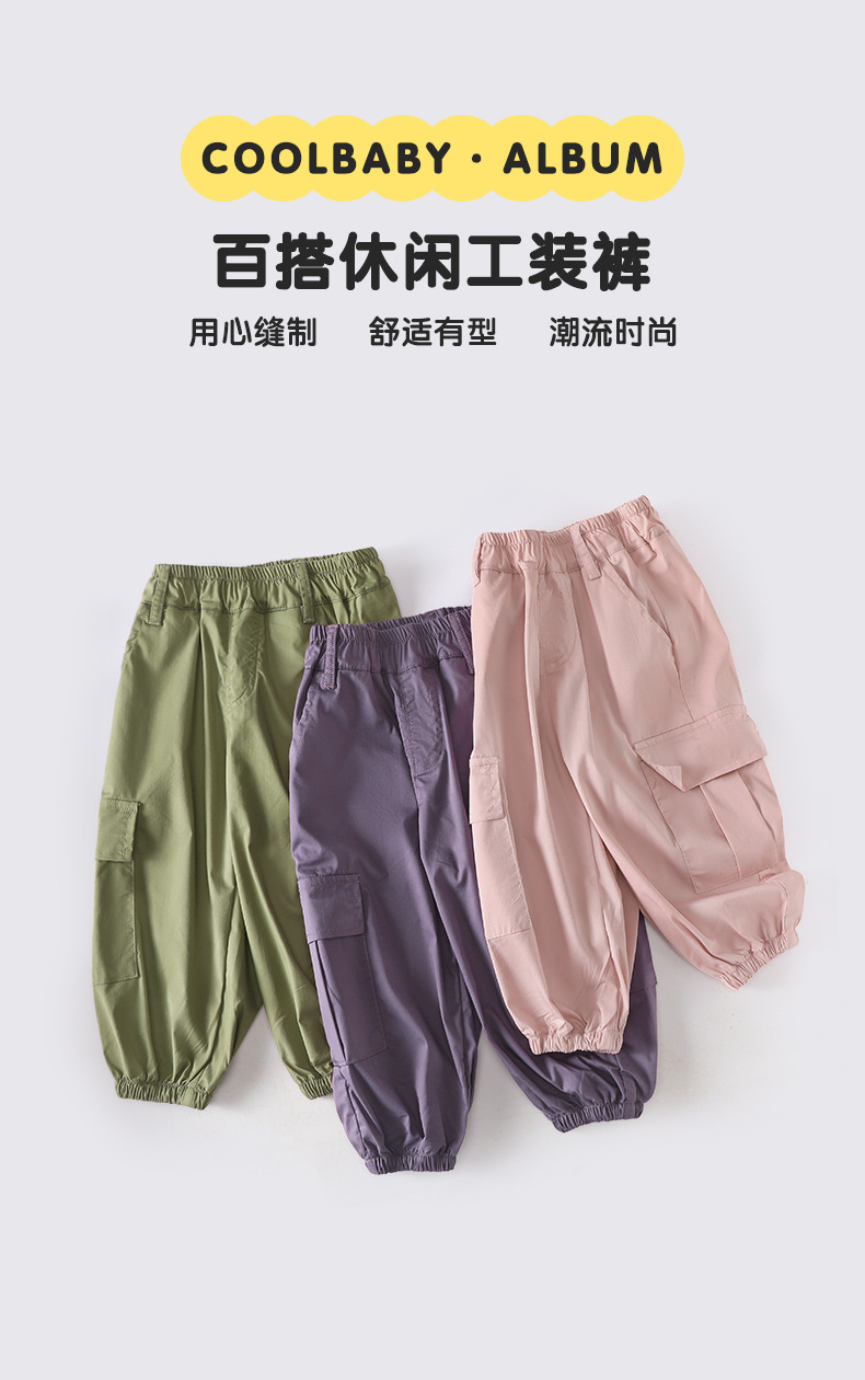 아동용 대형 포켓 작업복 바지, 봄, 가을 한국 스타일 단색 루즈한 A라인 바지, 캐주얼 레깅스, 남아용 바지