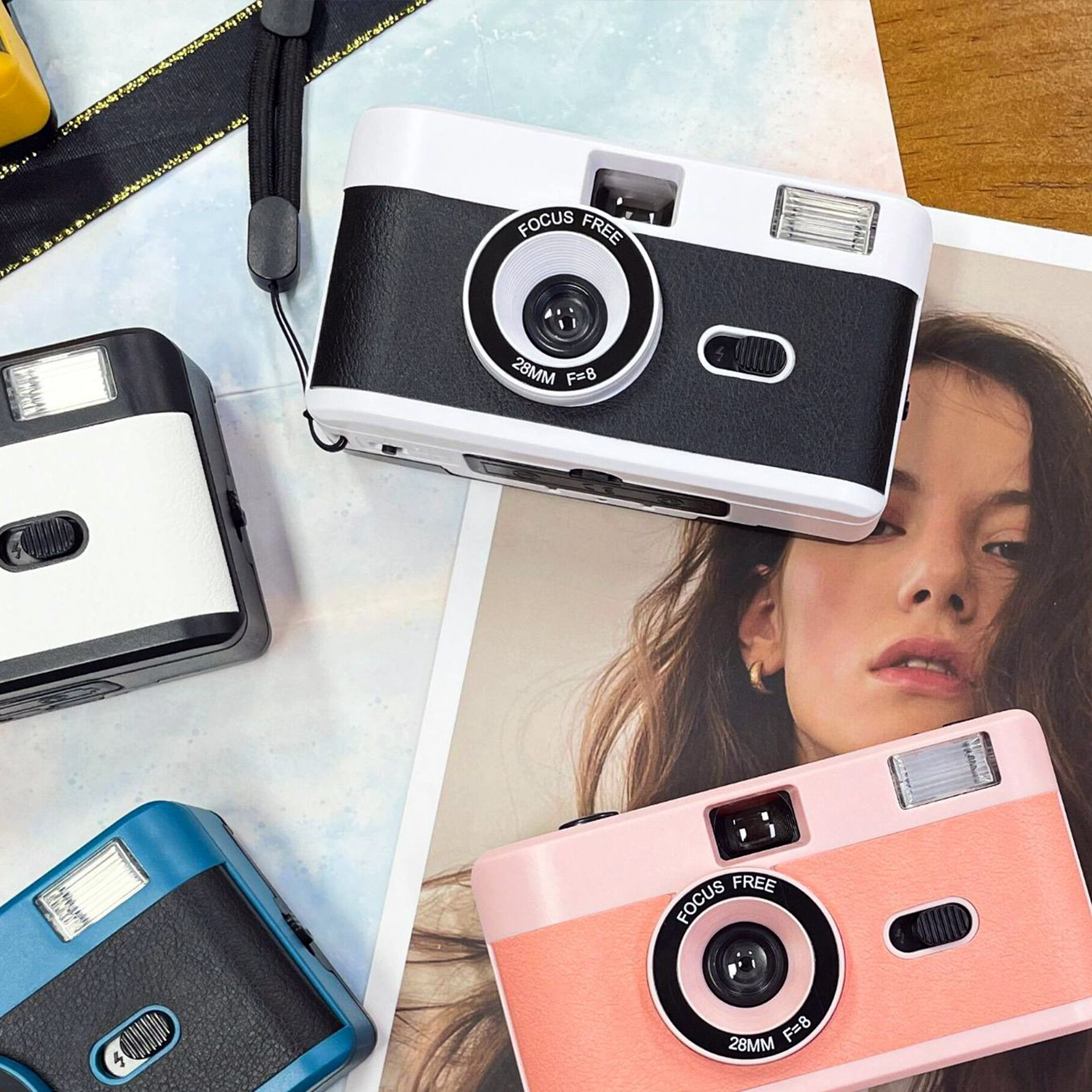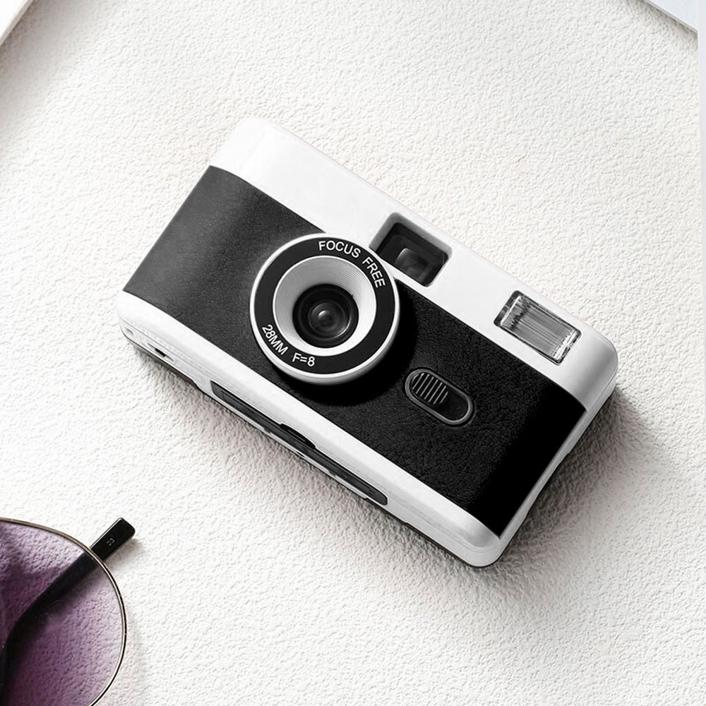 레트로 W35 화이트 쉘 블랙 가죽 멀티 타임 필름 필름 카메라를 반복 필름 카메라에 사용할 수 있습니다스토어 가기