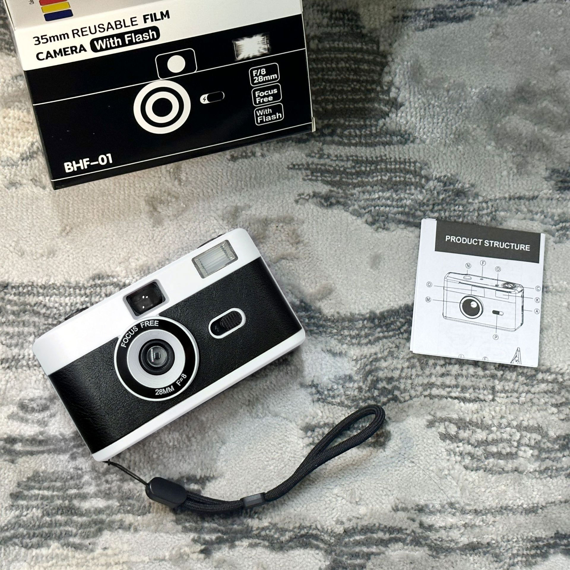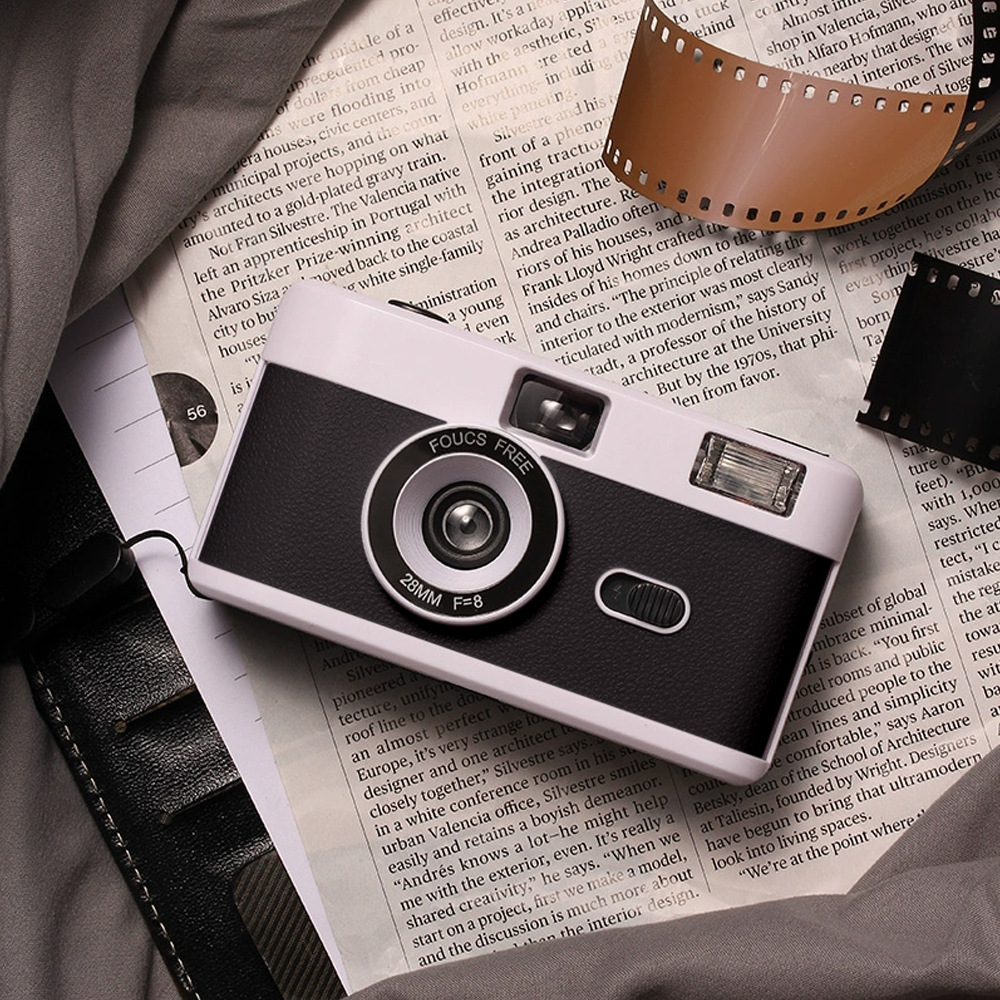 레트로 W35 화이트 쉘 블랙 가죽 멀티 타임 필름 필름 카메라를 반복 필름 카메라에 사용할 수 있습니다