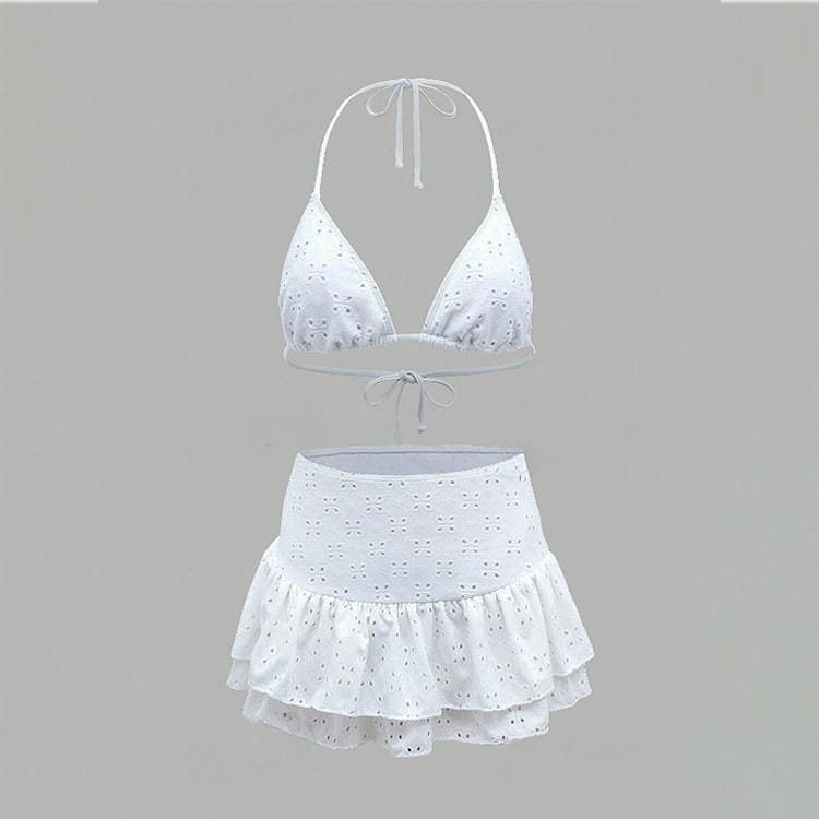 순수한 욕망 화이트 스플릿 수영복 여성용 비키니 3 피스 크로스 보더 새로운 섹시한 딥 V, 여성용 백리스 수영복 수집