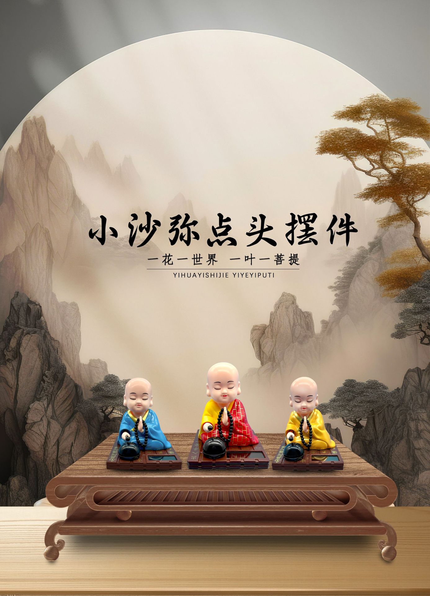 국경을 넘는 인기상품 태양광 불상이 머리를 흔드는 나무고리비 자동차용 가구 공예품 차량 장식품스토어 가기
