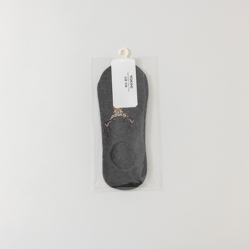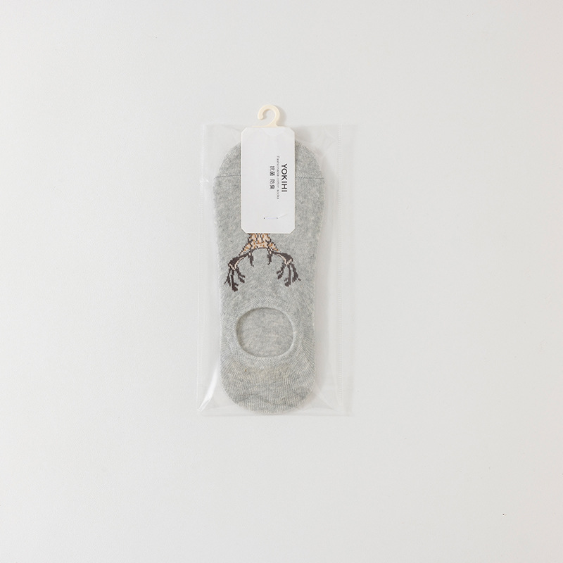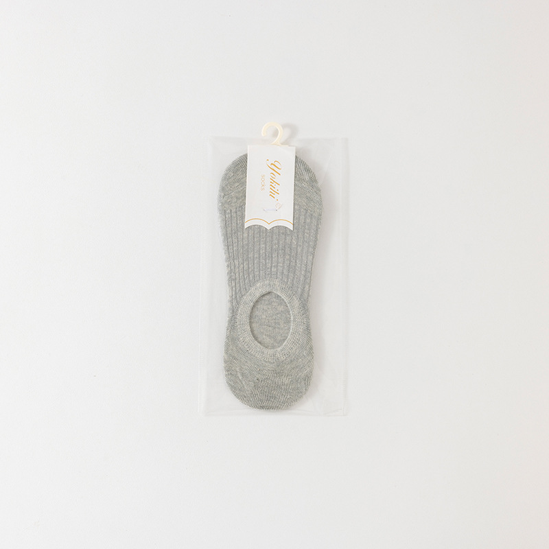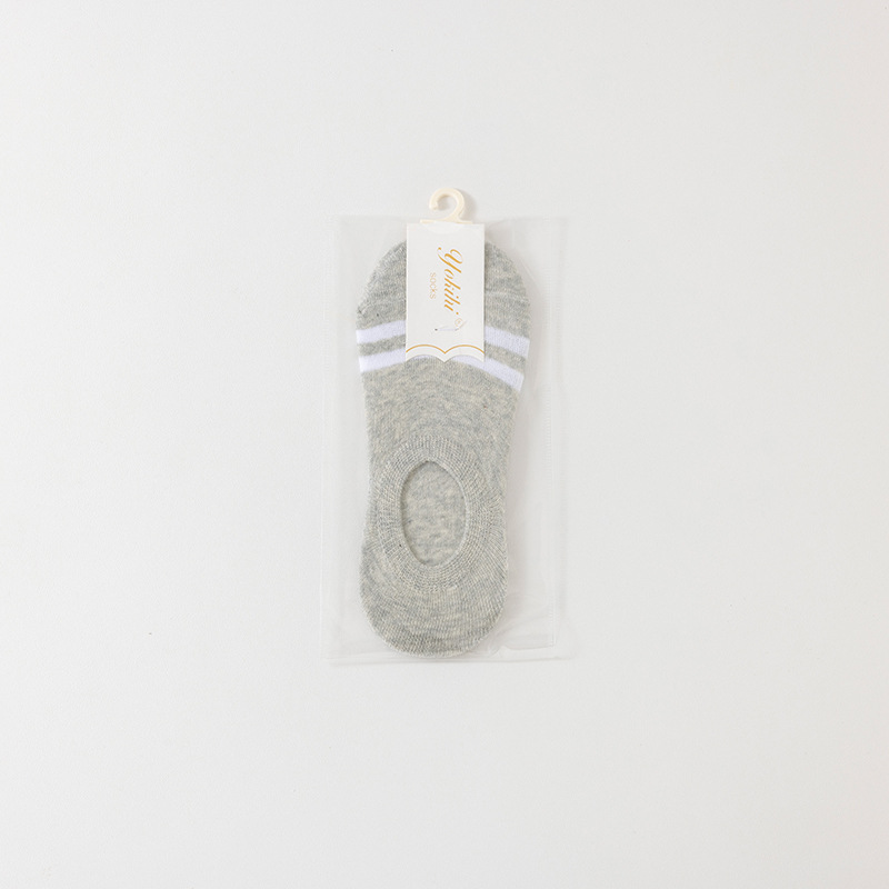 • 순면 보이지 않는 여성용 양말 스트라이프 그레이