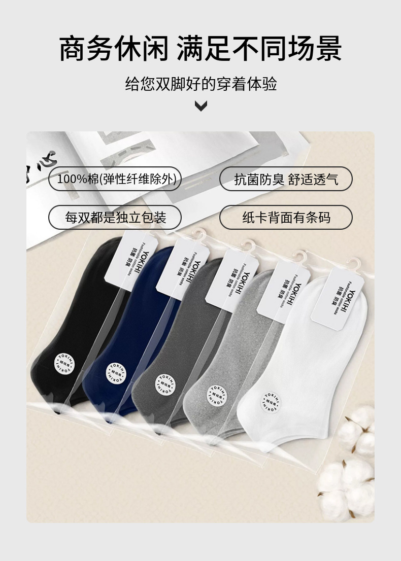 [항균 탈취제] 남성 양말 통기성 면 양말 봄과 여름 짧은 보트 양말 단색 독립 포장 슈퍼마켓 도매