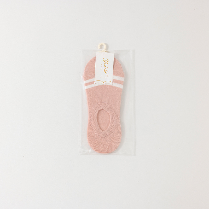 • 순면 투명 여성용 양말 스트라이프-라이트 핑크