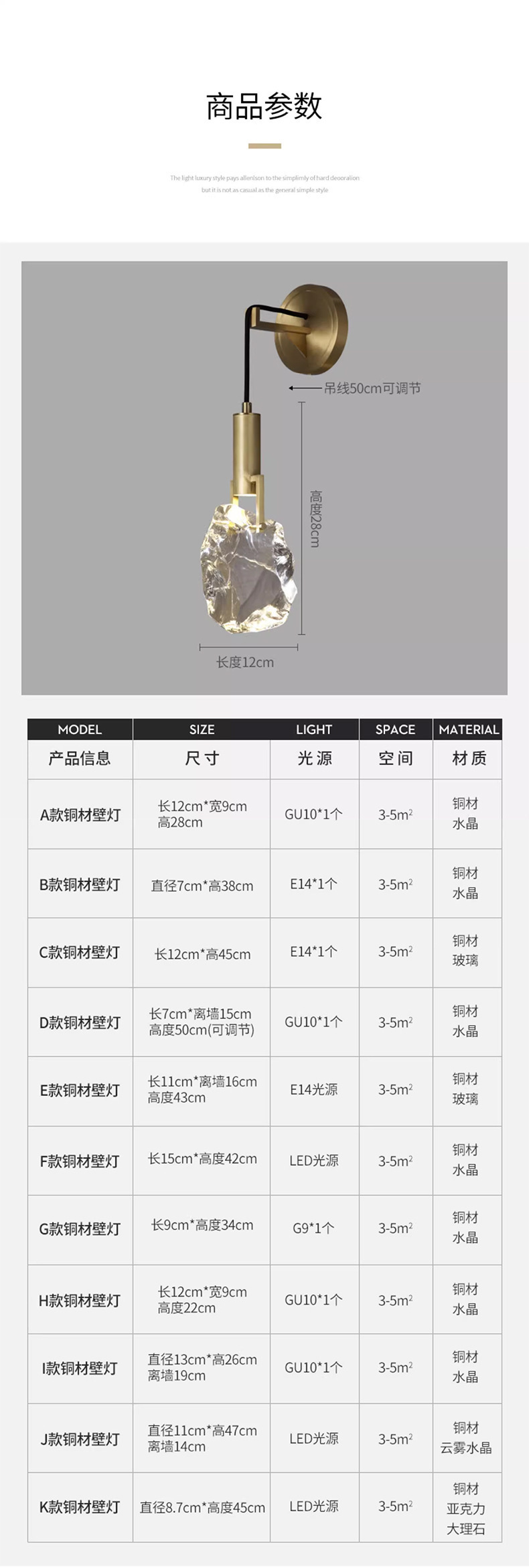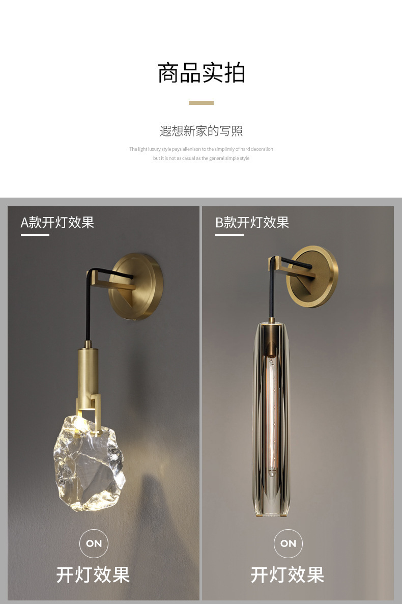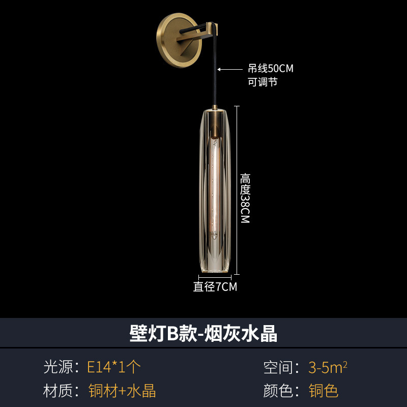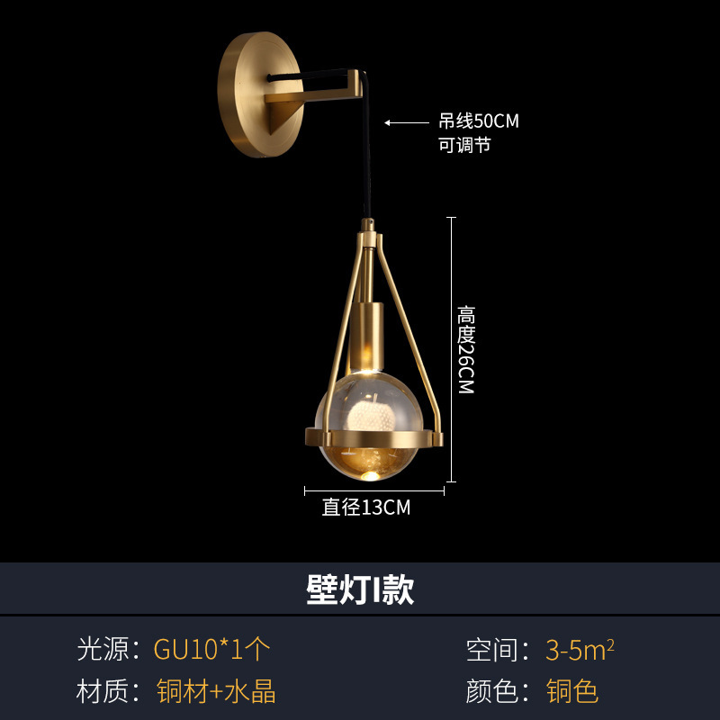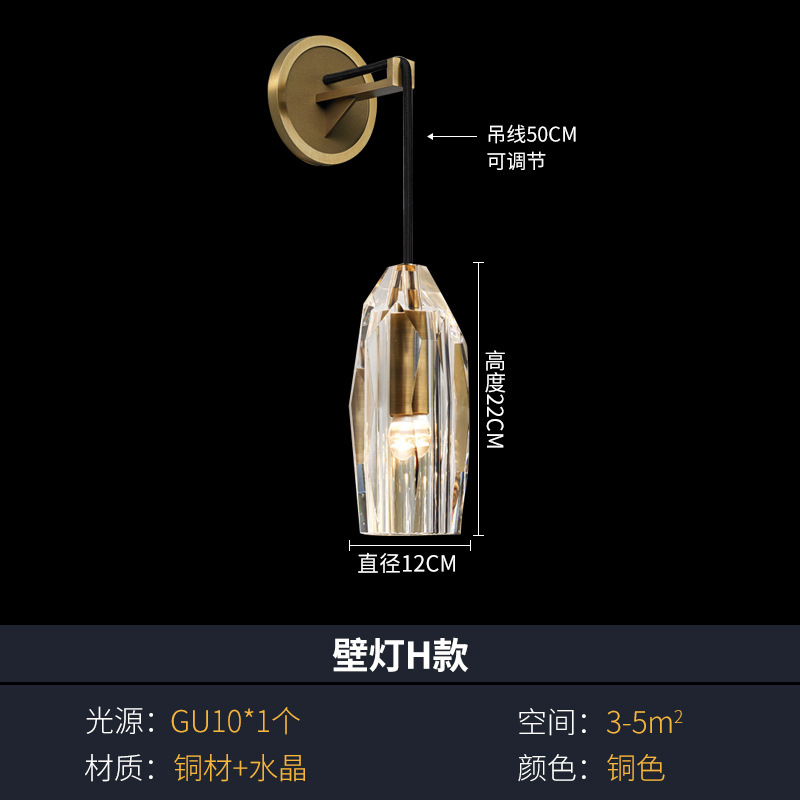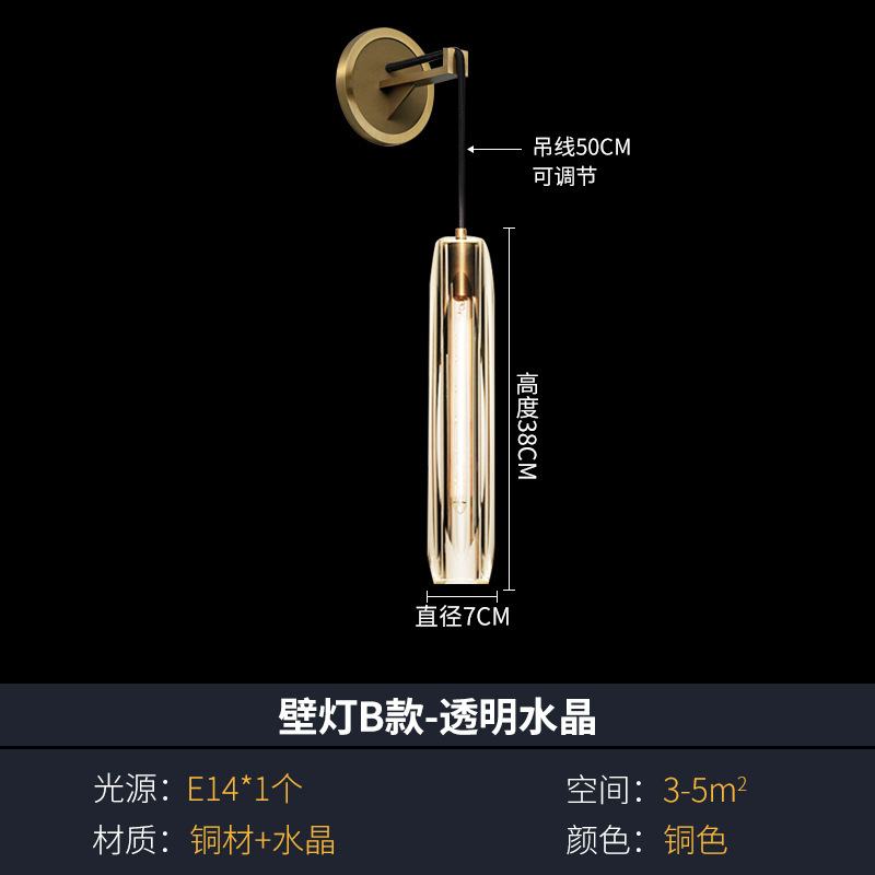 모든 구리 빛 럭셔리 크리스탈 벽 램프 침실 침실 램프 거실 배경 벽 간단한 현대 창조적 인 디자이너 계단