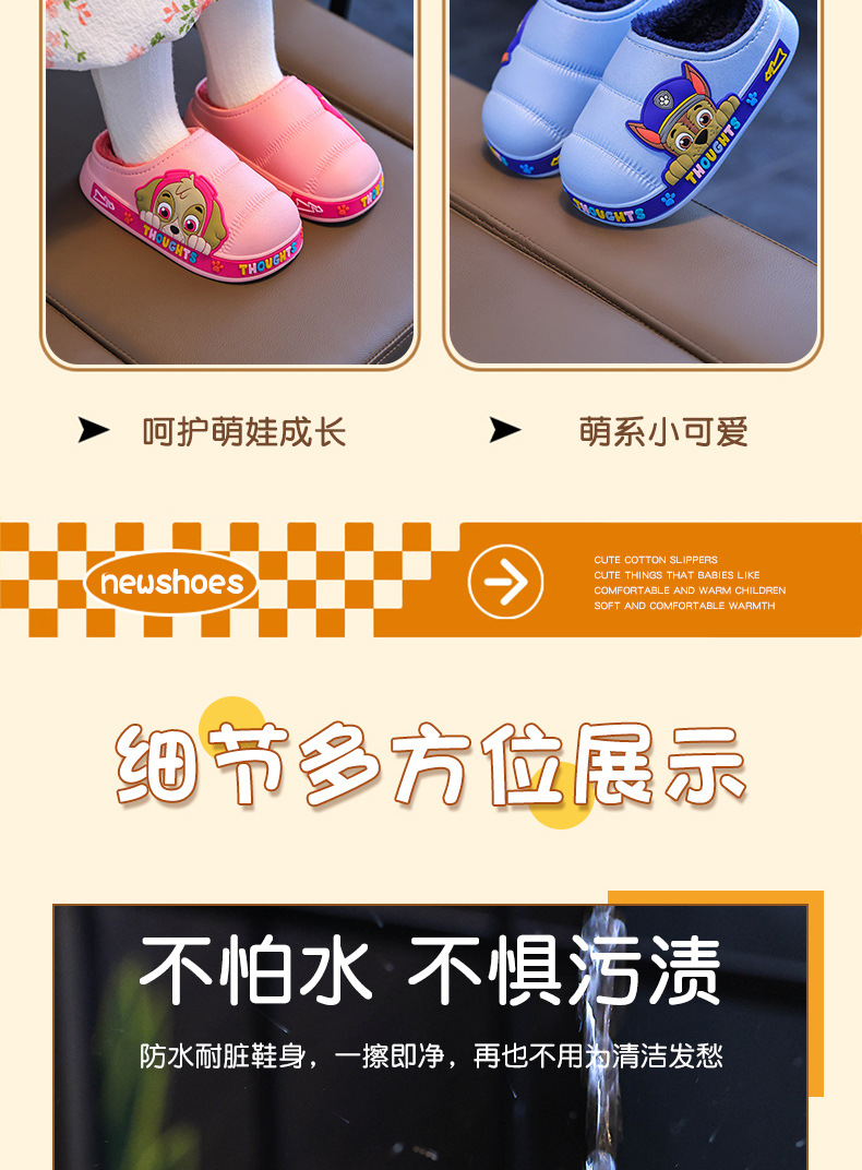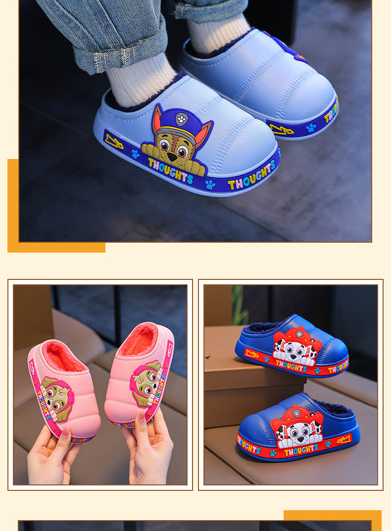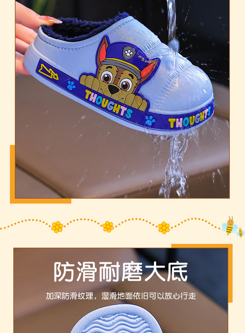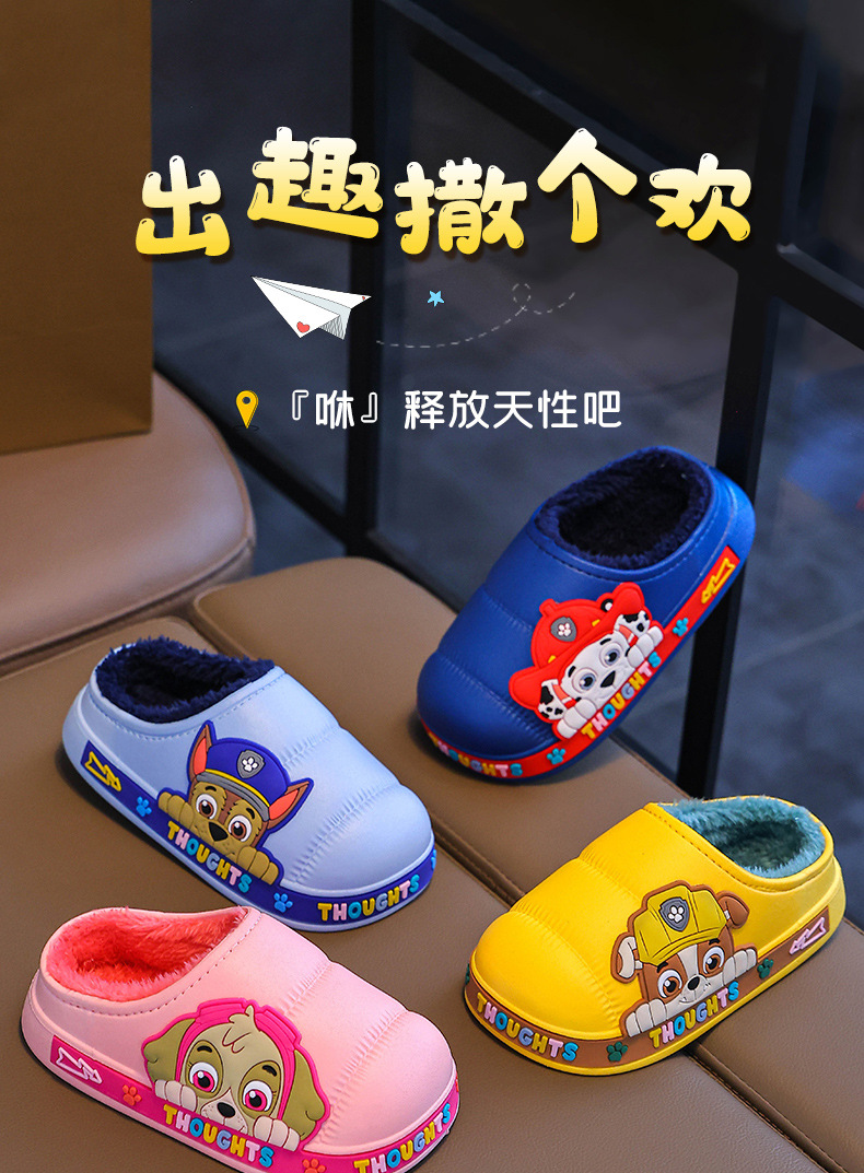강아지 팀 소년용 슬리퍼 여름 실내용 남아용 면 슬리퍼 아기용 외출용 미끄럼 방지 방수 어린이 면 슬리퍼 큰 아이용
