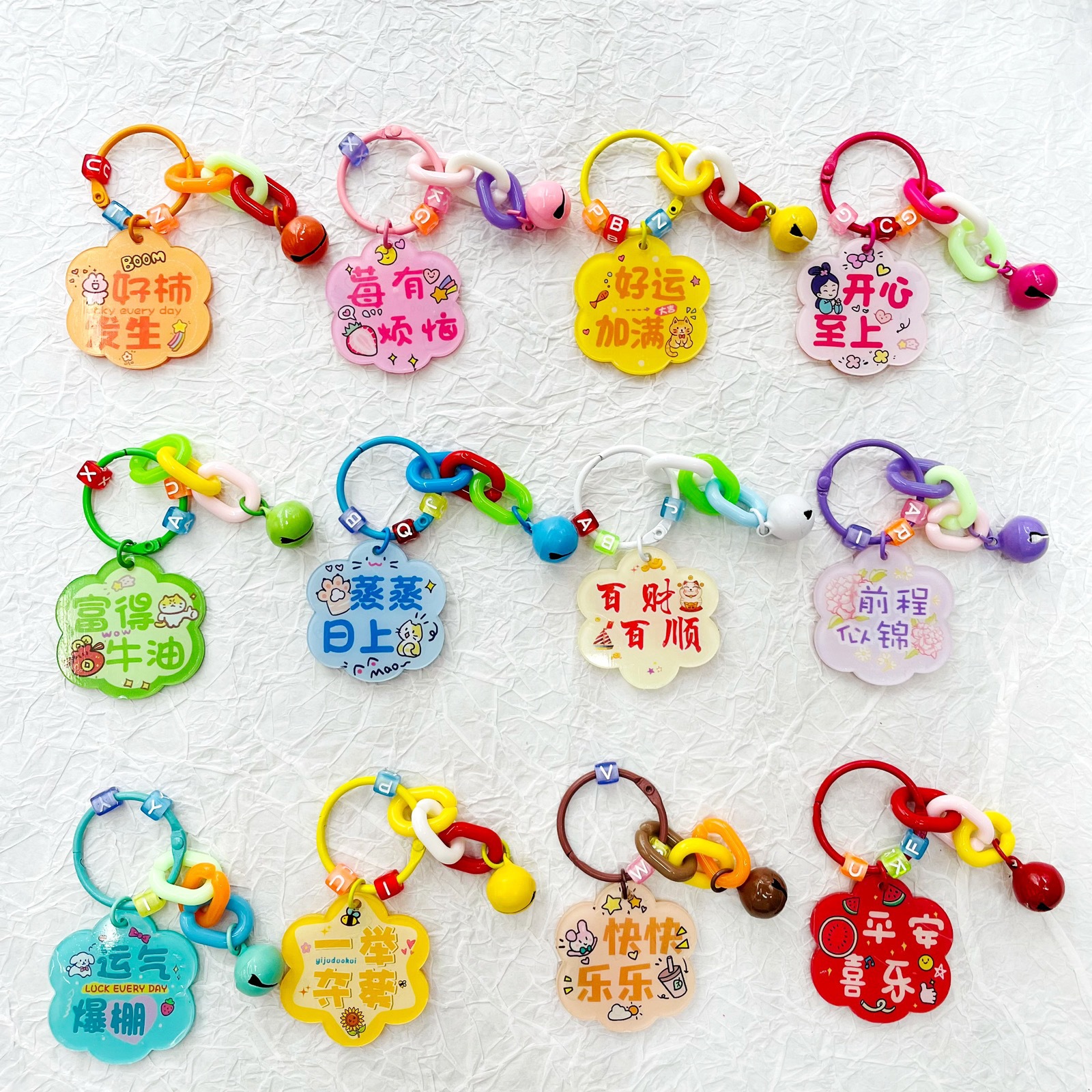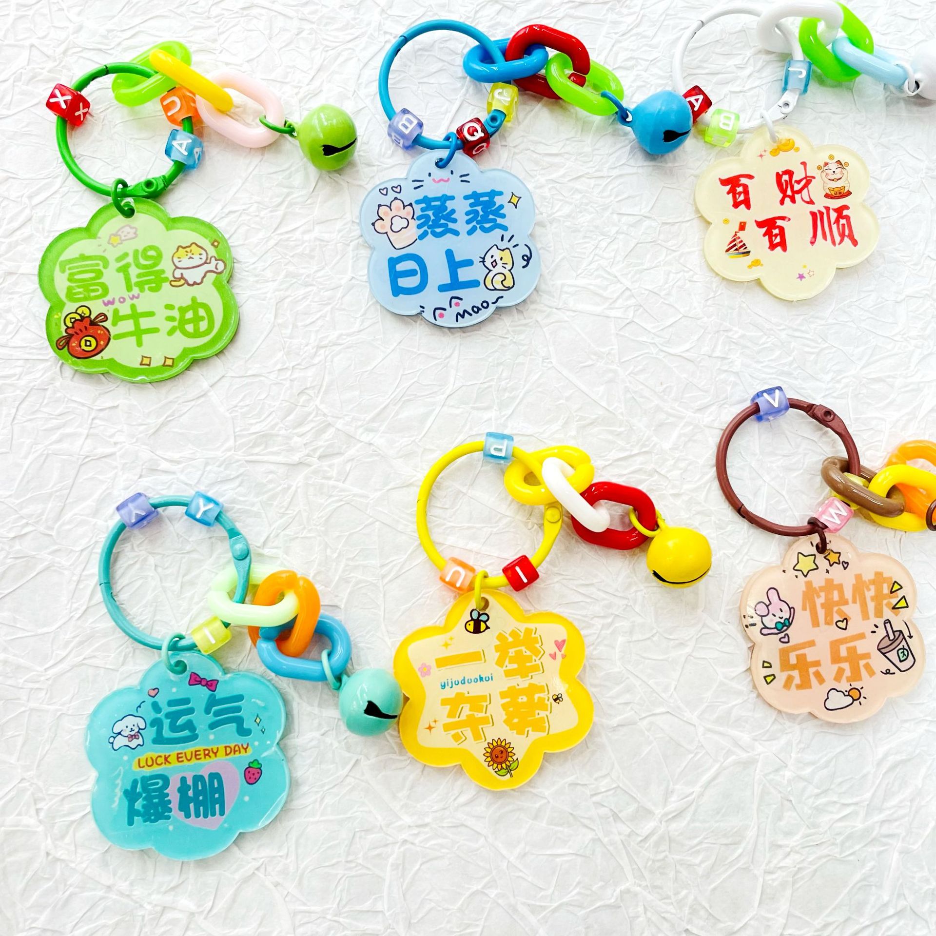 창조적 인 새로운 꽃 아크릴 텍스트 카드 DIY 키 체인 펜던트 작은 명확한 가방 매달려 장식스토어 가기