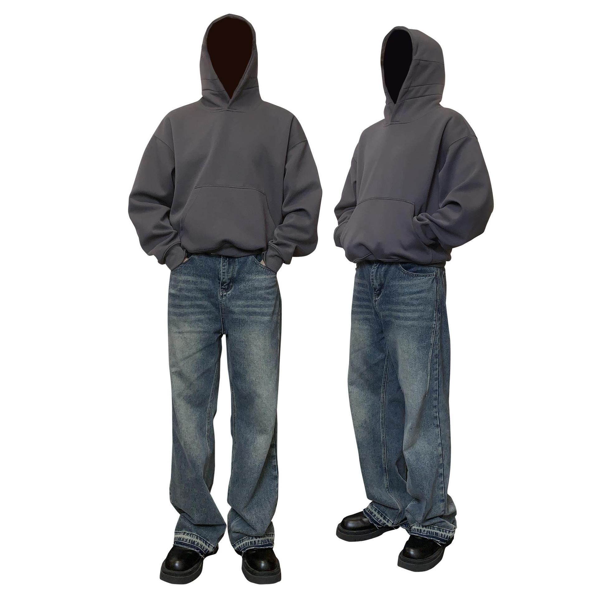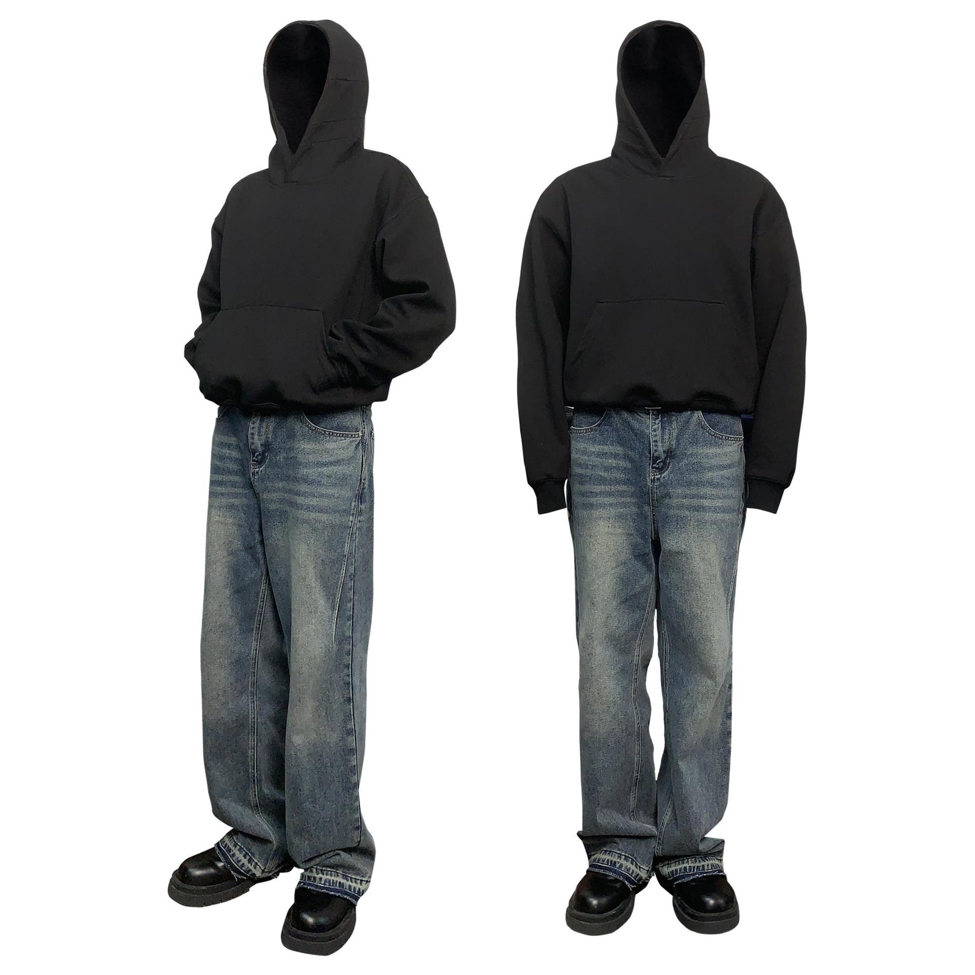 새로운 짧은 스웨트 셔츠 단색 후드 가을 미국 느슨한 후드 짧은 넓은 플러스 사이즈 스웨트 셔츠 남자와 여자의 커플스토어 가기