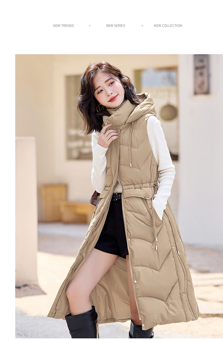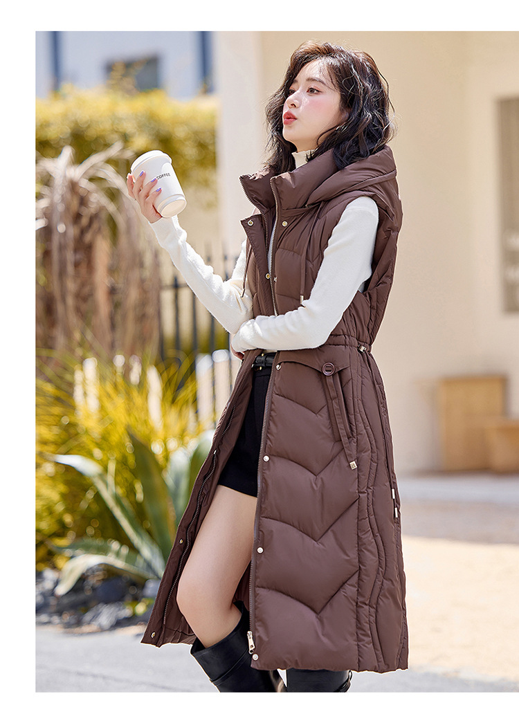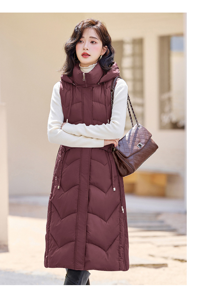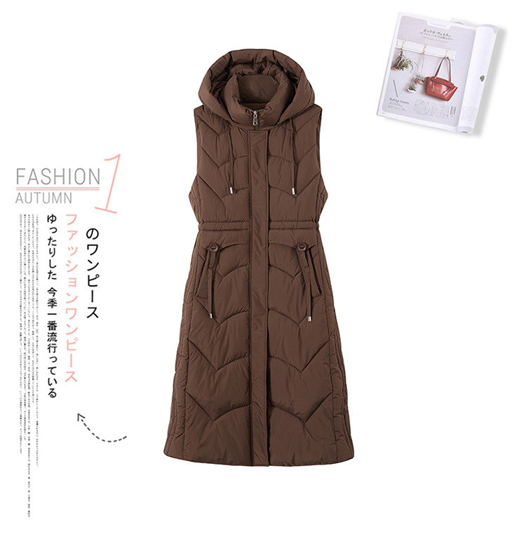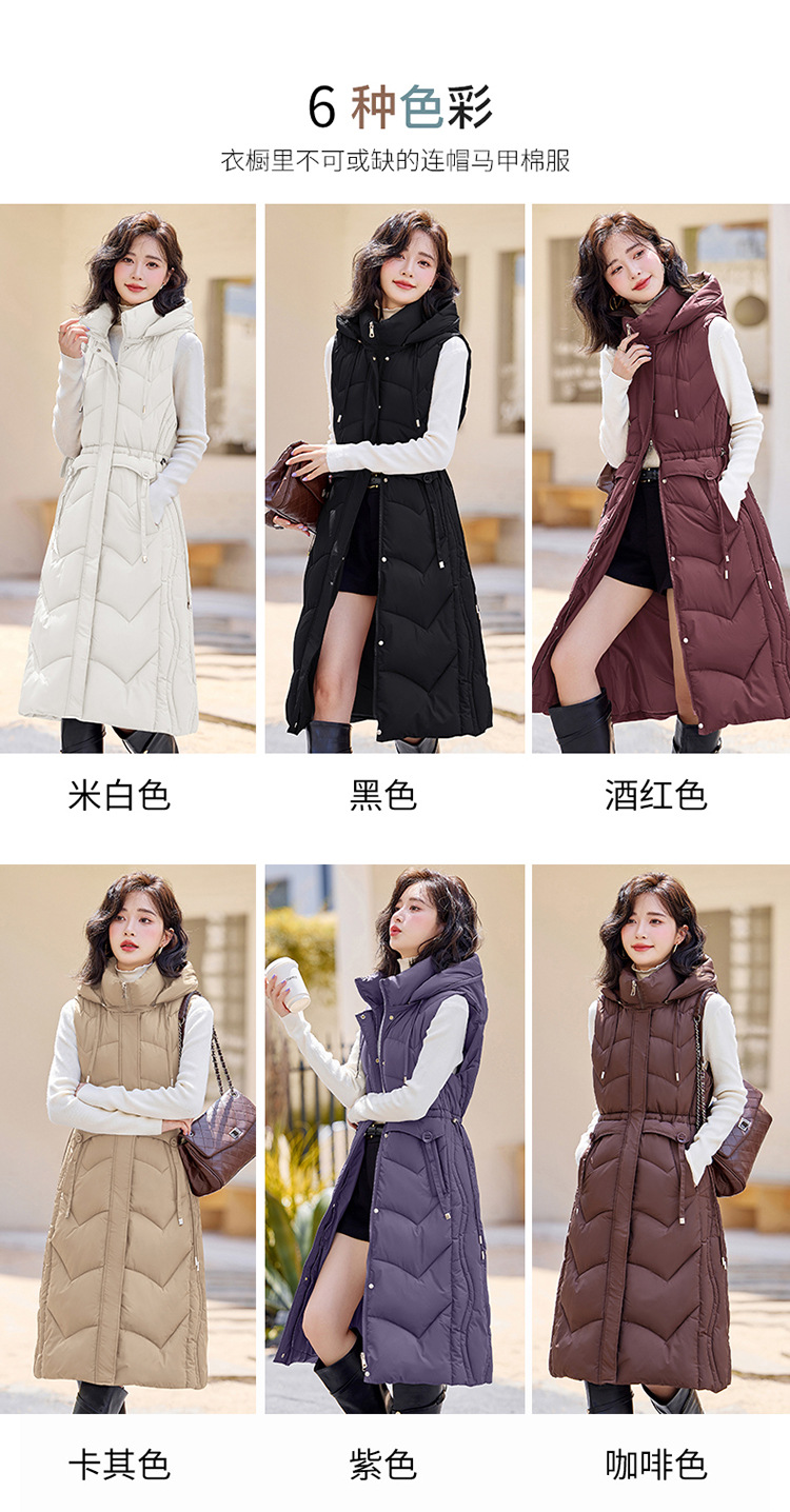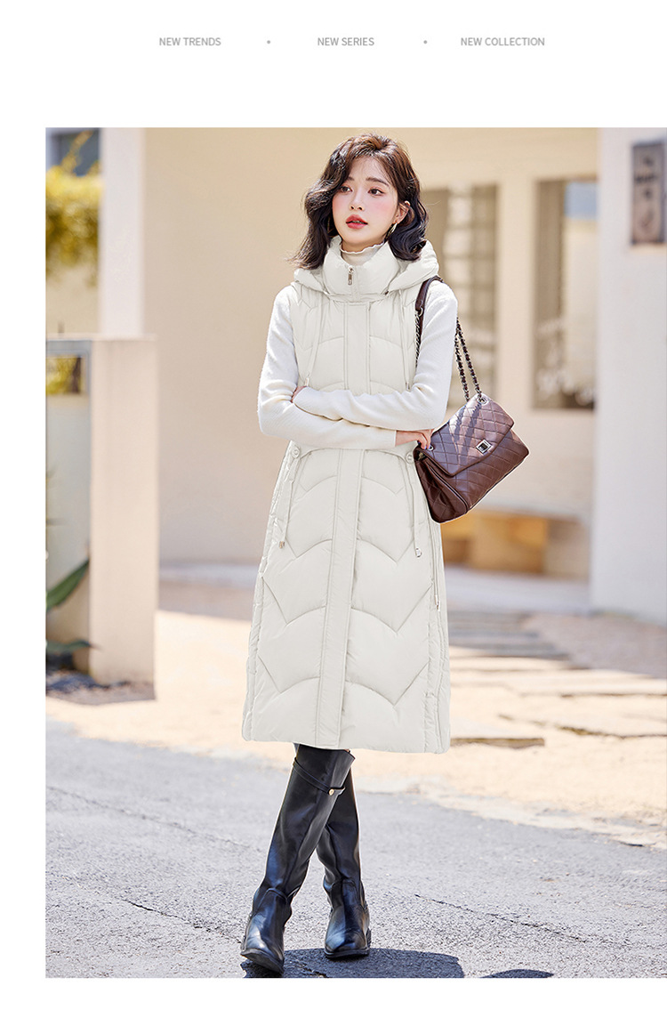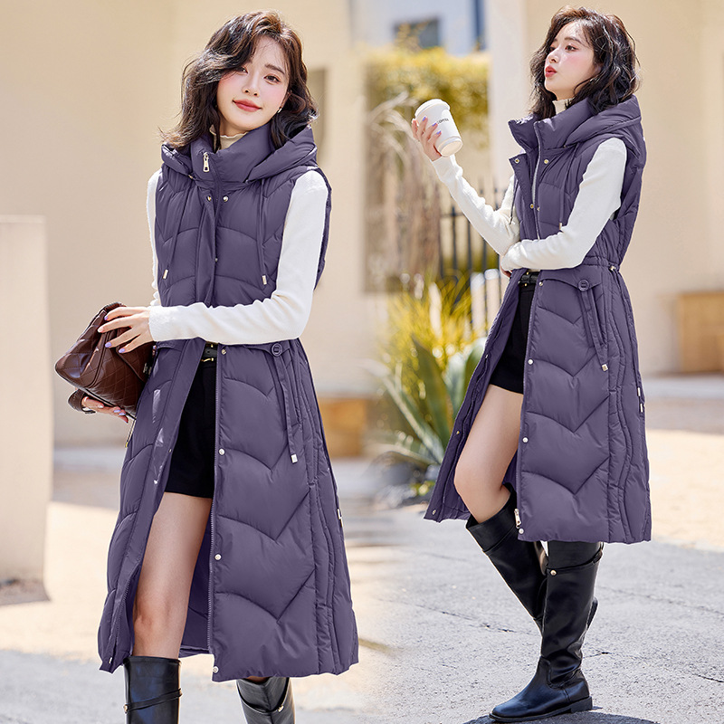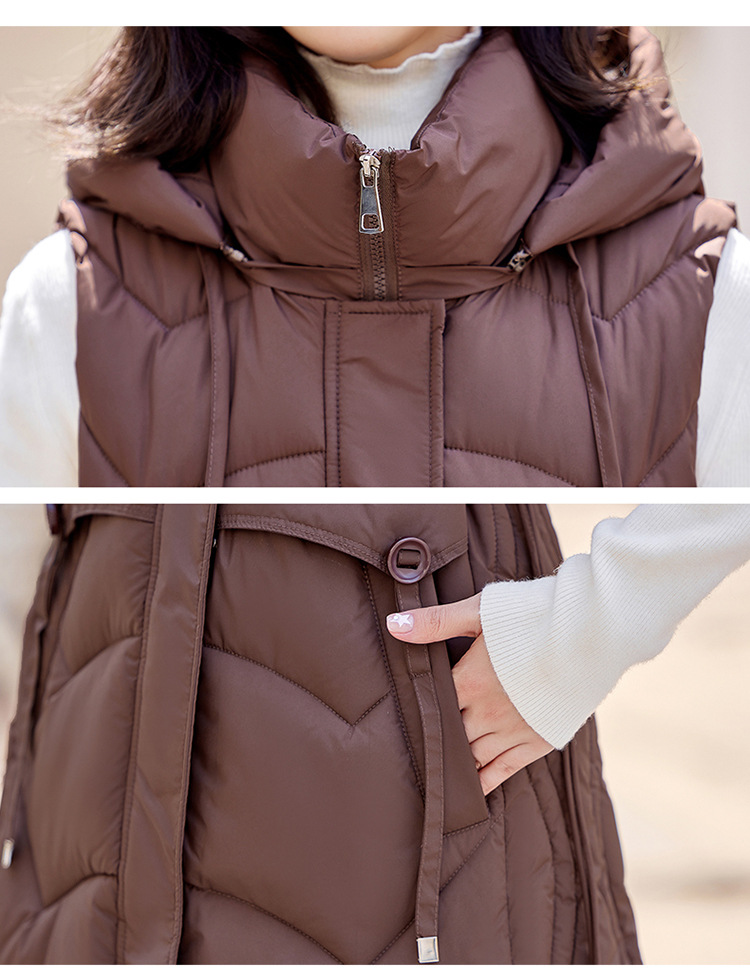 다운 코튼 조끼 여성 긴 2024 가을 겨울 한국 스타일 두꺼운 후드 핫 스타일 조끼 실내 재킷