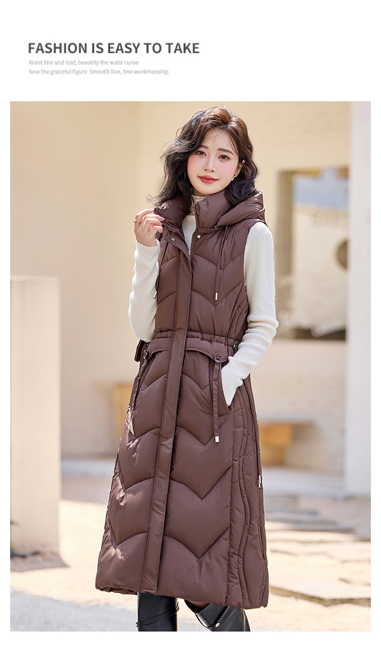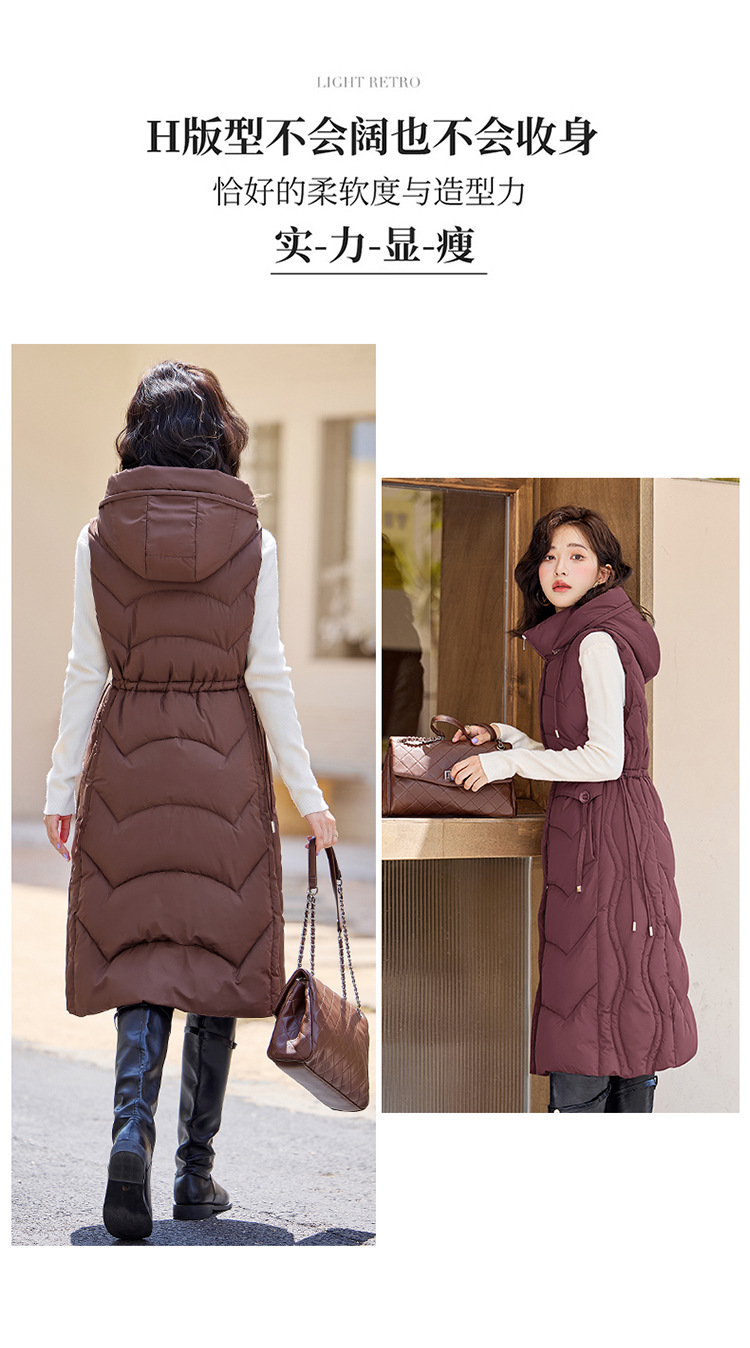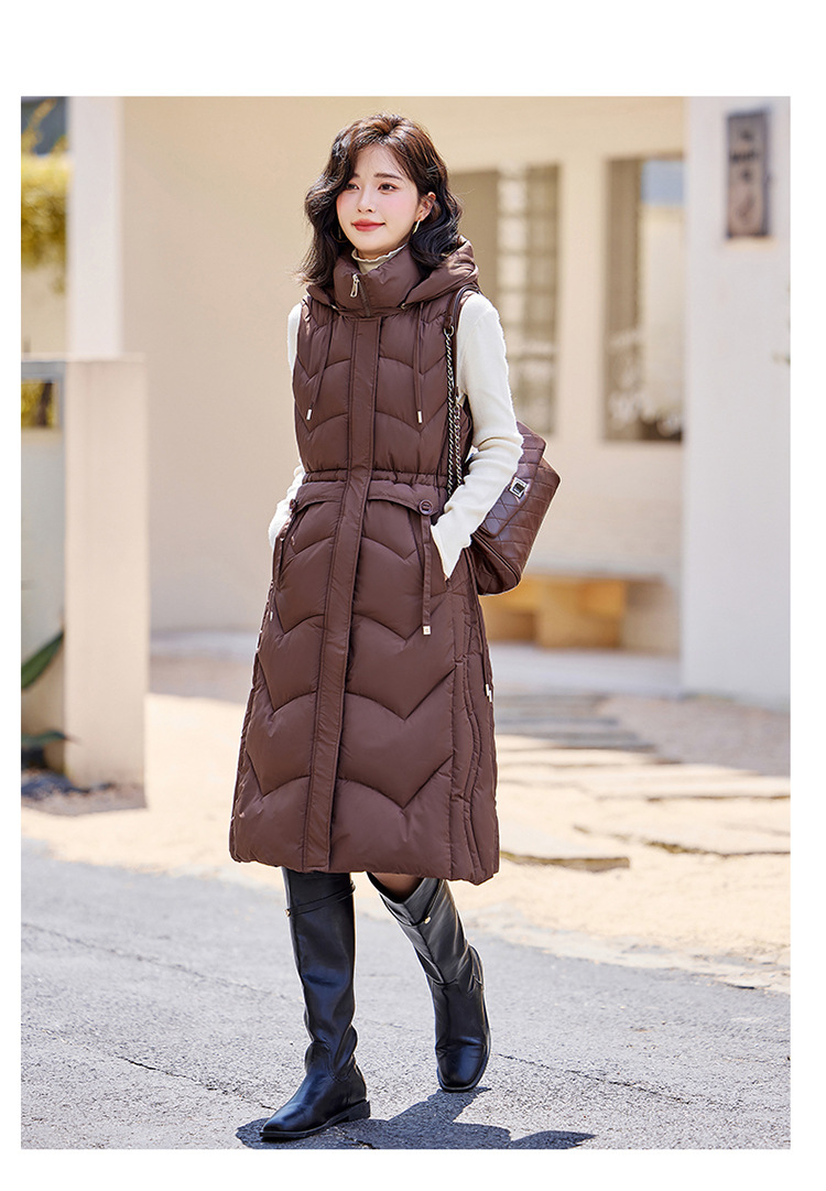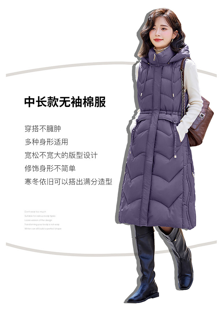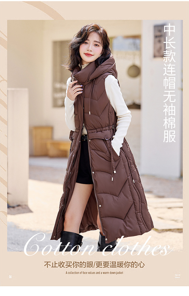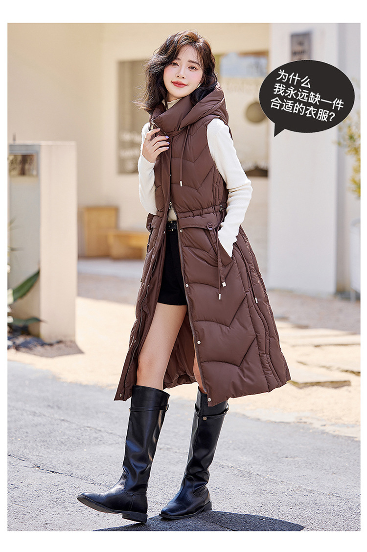 다운 코튼 조끼 여성 긴 2024 가을 겨울 한국 스타일 두꺼운 후드 핫 스타일 조끼 실내 재킷