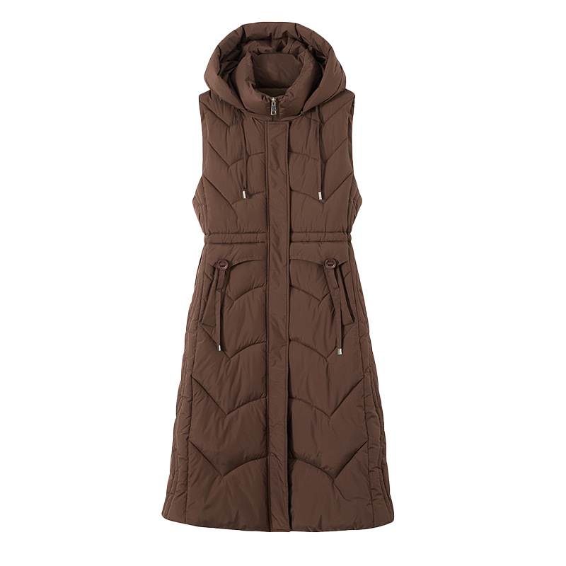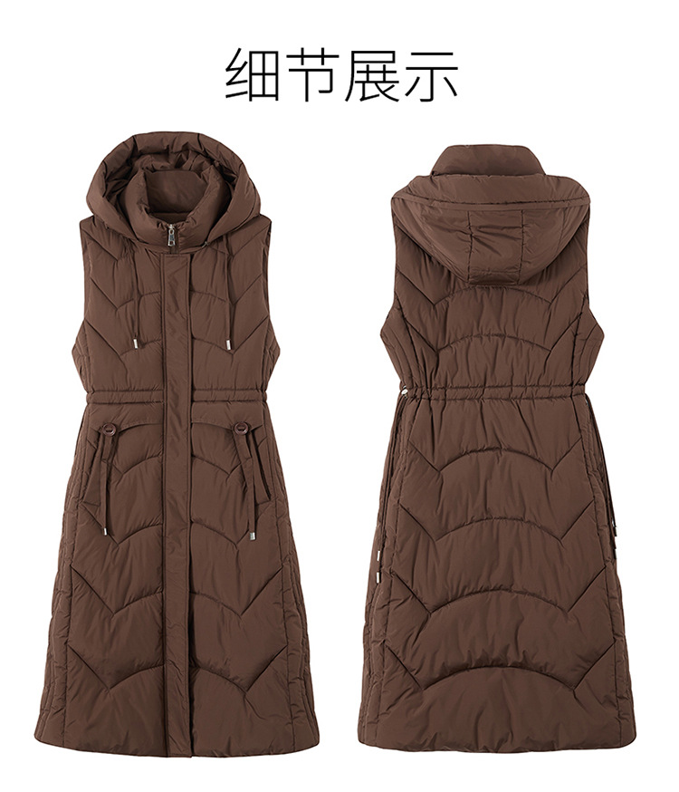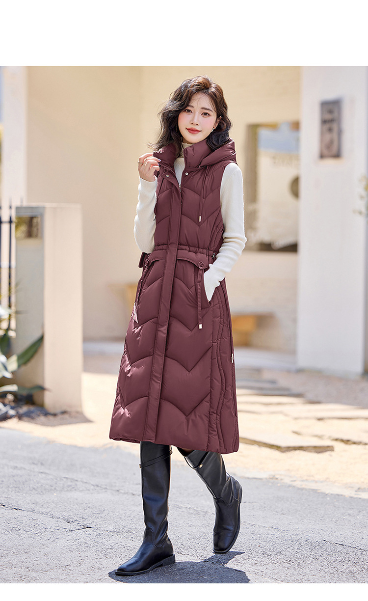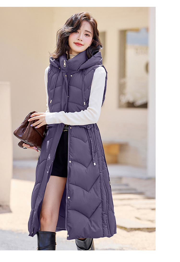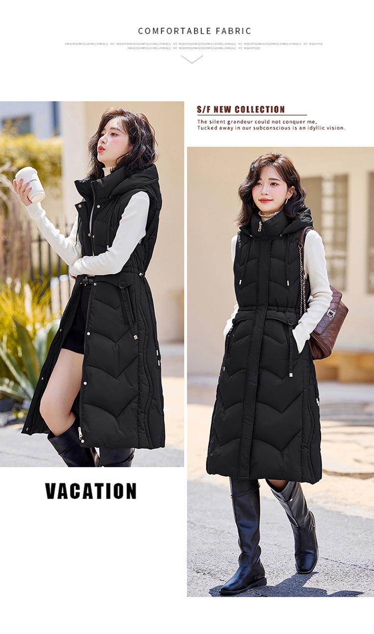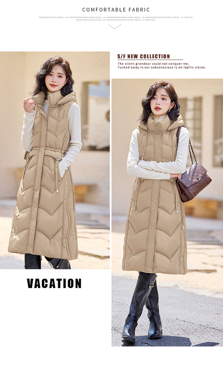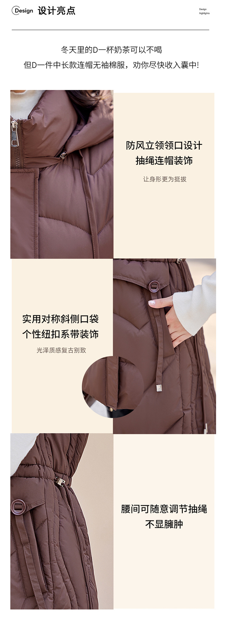 다운 코튼 조끼 여성 긴 2024 가을 겨울 한국 스타일 두꺼운 후드 핫 스타일 조끼 실내 재킷