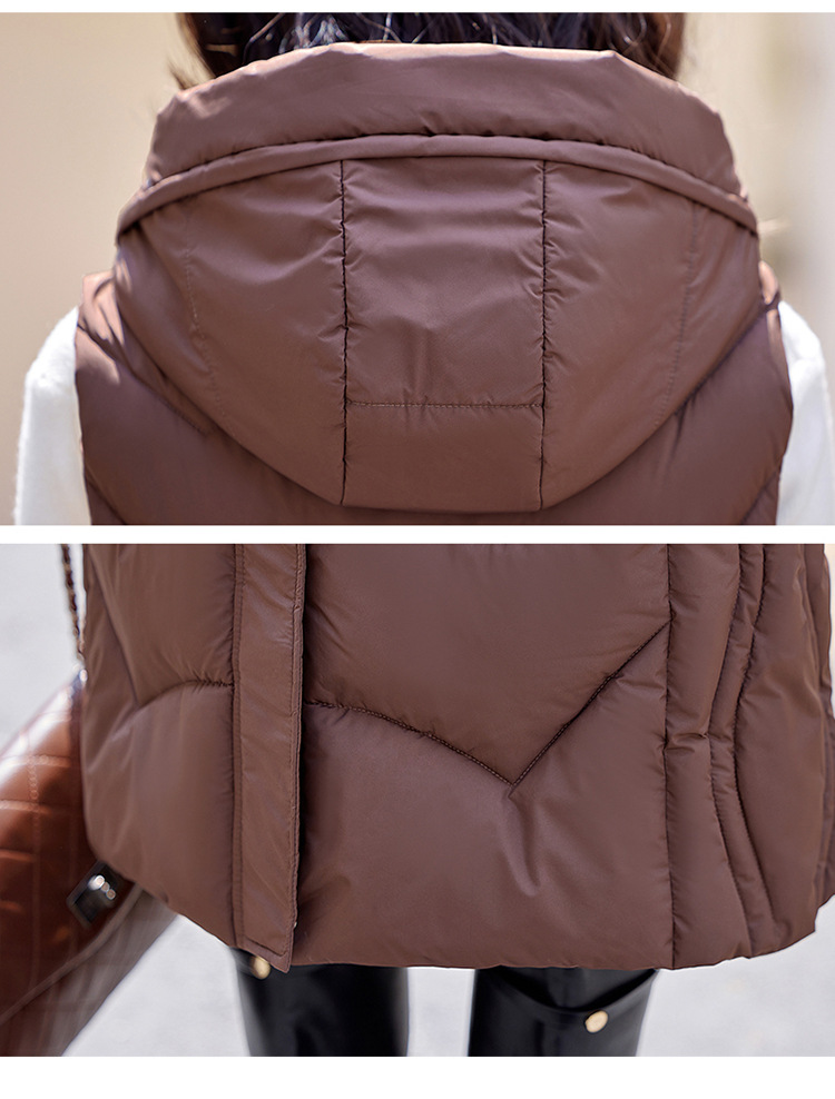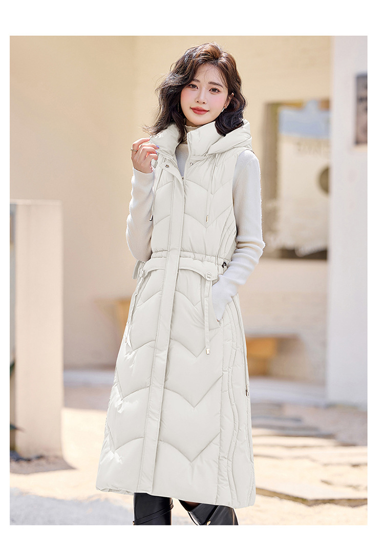 다운 코튼 조끼 여성 긴 2024 가을 겨울 한국 스타일 두꺼운 후드 핫 스타일 조끼 실내 재킷스토어 가기
