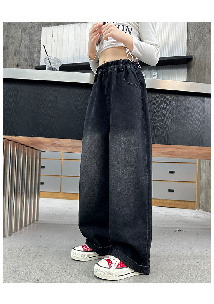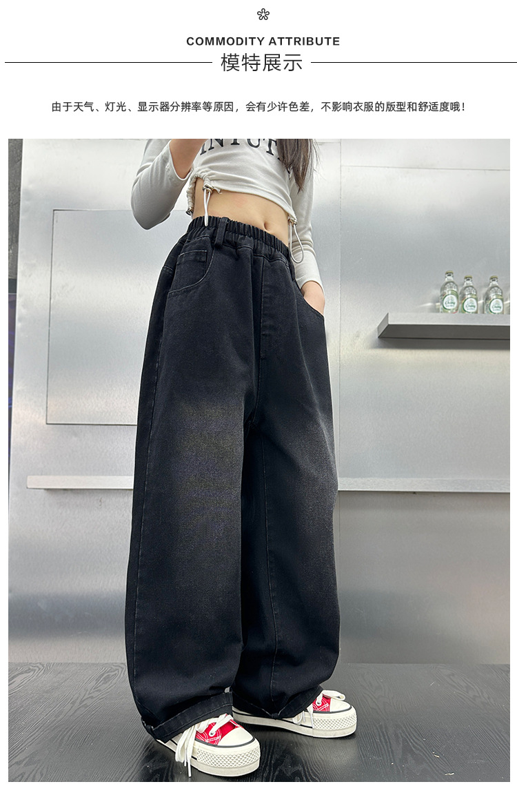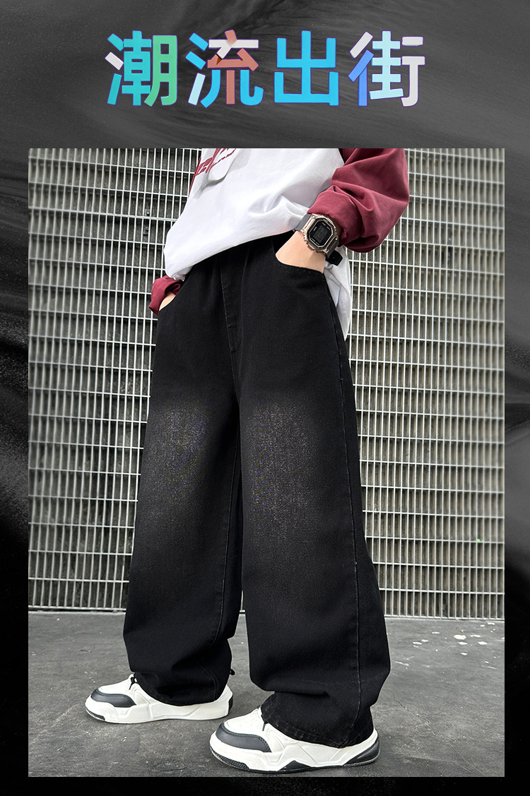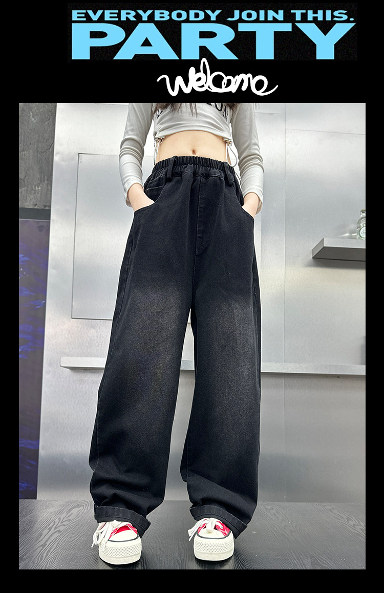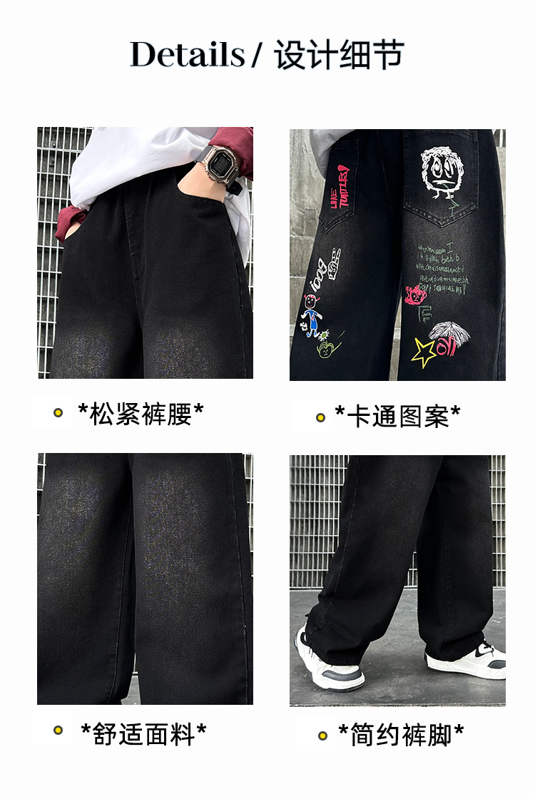 남아 및 여아 청바지, 2025 봄 가을 스타일, 아메리칸 그래피티 프린트 와이드 팬츠, 아동용 스트리트 스타일 루즈 스트레이트 팬츠