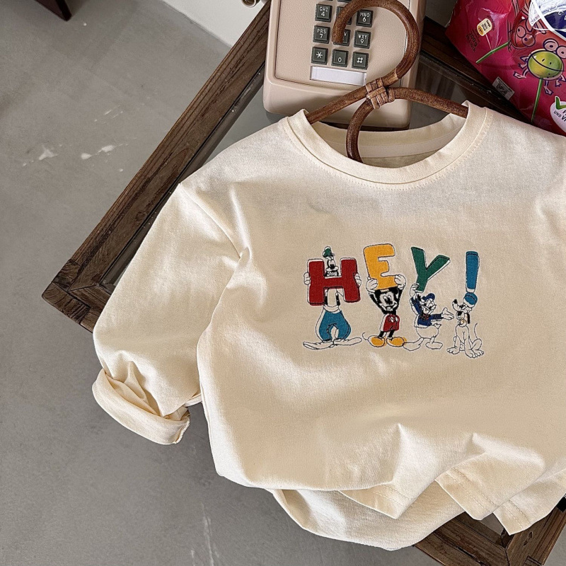 어린이 면화 긴팔 티셔츠 봄과 가을 새 소년과 소녀 만화 중소 어린이 탑 아기의 서양식 기본 셔츠 코튼 티셔츠스토어 가기