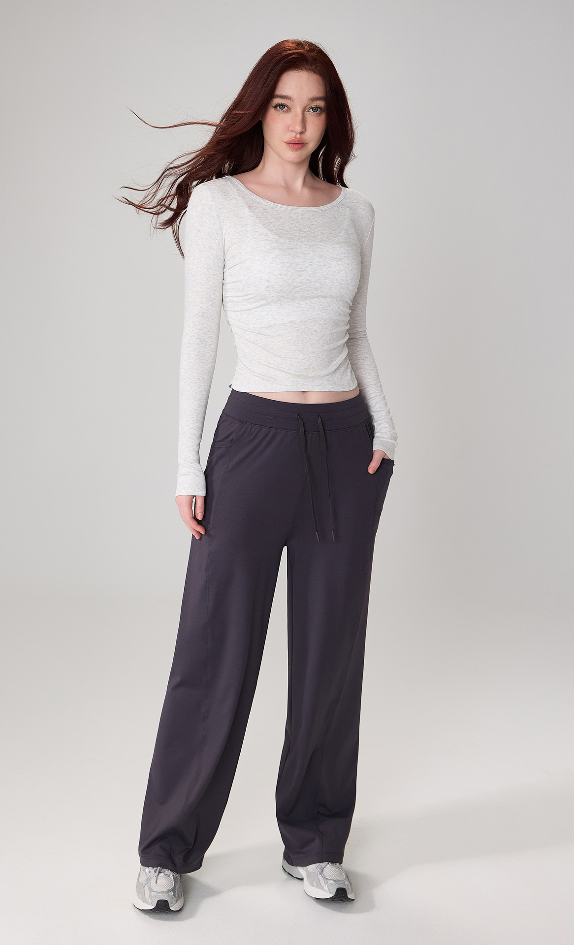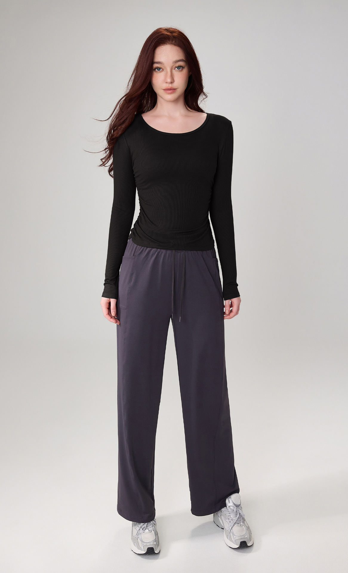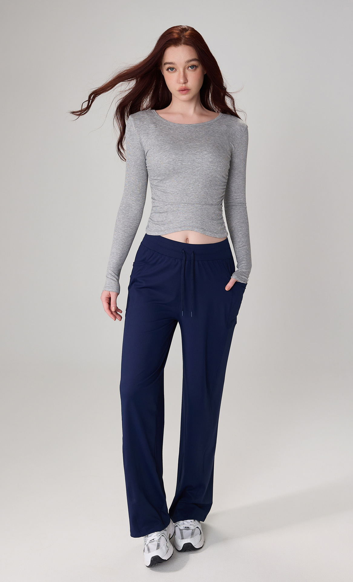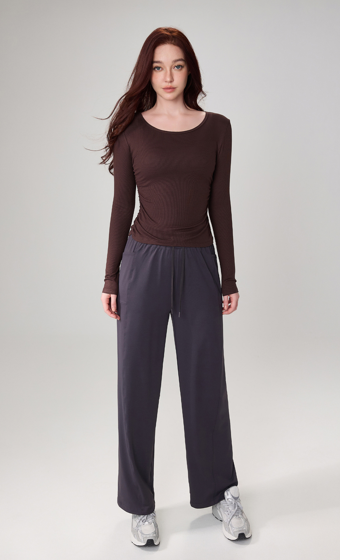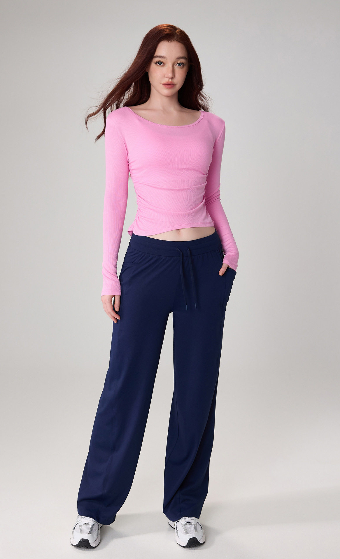 가을 알몸 요가 옷 플리츠 슬림 핏 크루 넥 스포츠 탑 여성용 손가락 커버 필라테스 러닝 피트니스 긴 소매스토어 가기