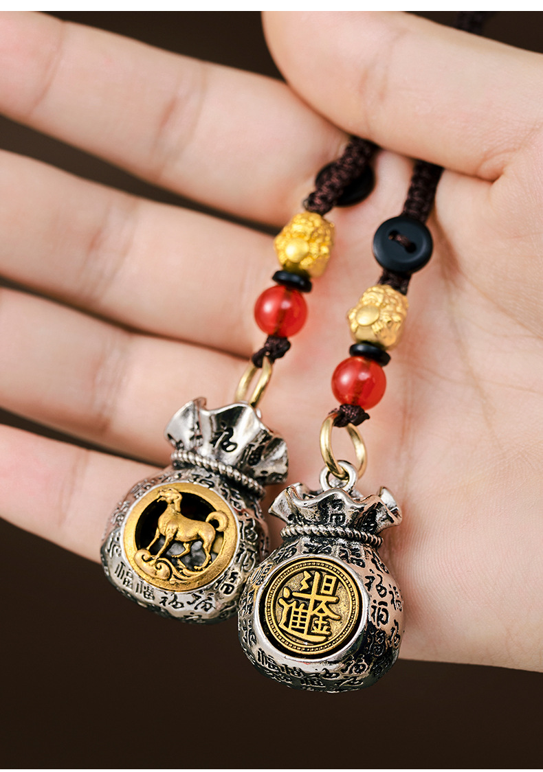 12 조디악 조디악 리진 바이푸 머니 백 회전 가능한 포춘 가방 펜던트 자동차 키 체인 펜던트 남녀 조디악