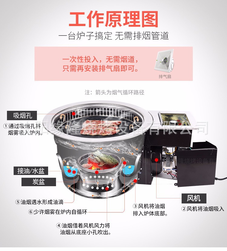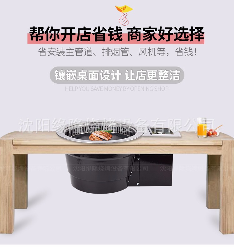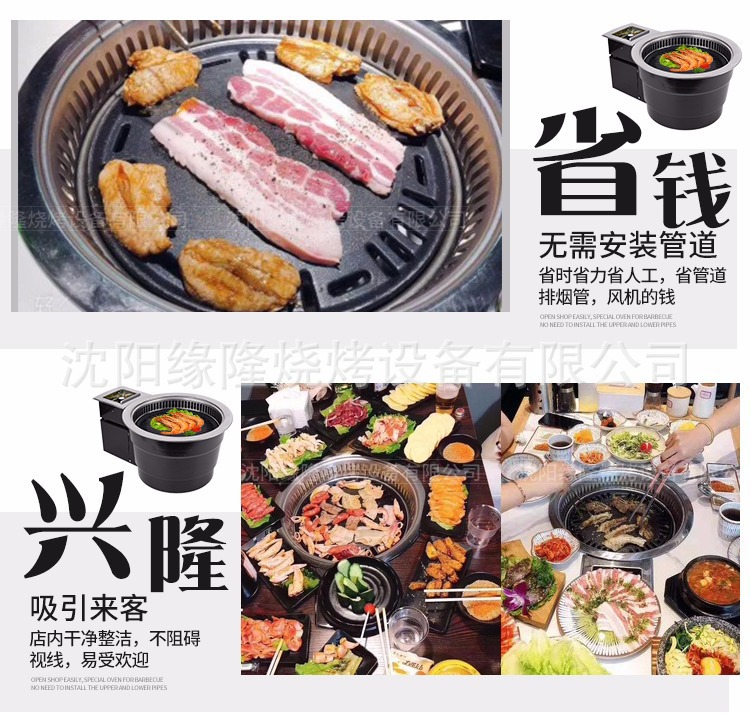한국식 무연 숯불구이 자가식 숯불구이 내장형 한국식 바베큐 그릴 자체연소 무연 숯불구이 상업용스토어 가기