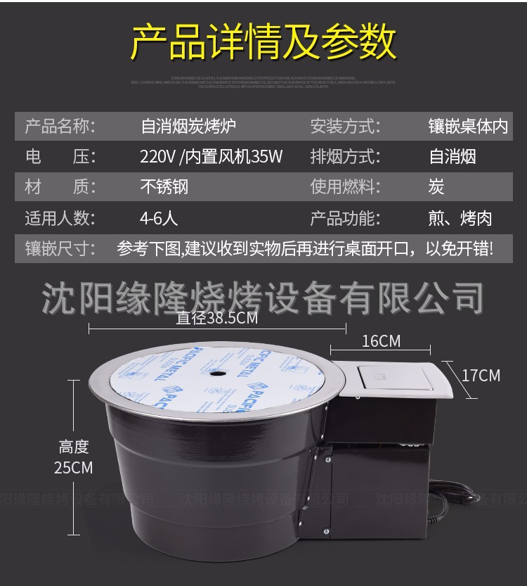 한국식 무연 숯불구이 자가식 숯불구이 내장형 한국식 바베큐 그릴 자체연소 무연 숯불구이 상업용