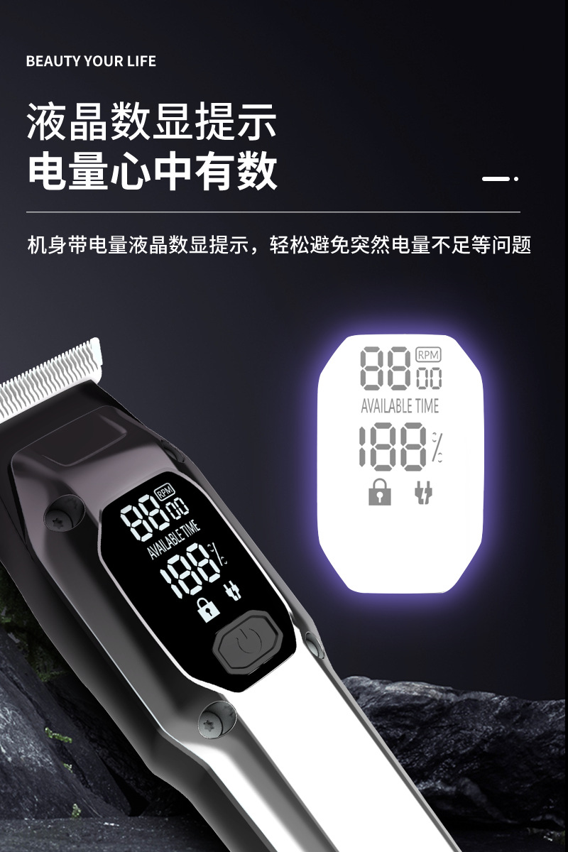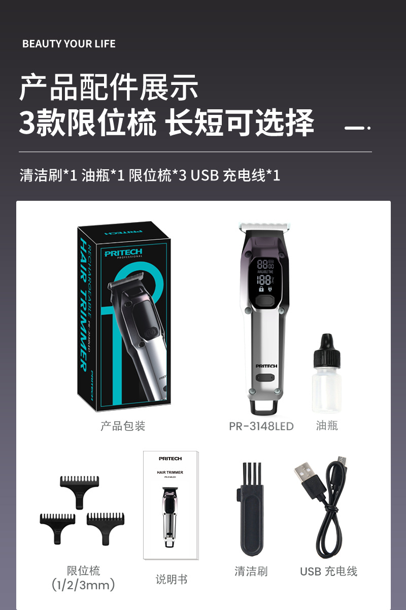 피치 전기 클리퍼 PR-3148 국경 새로운 LED LCD 디지털 디스플레이 헤어 클리퍼 USB 빠른 충전 헤어 살롱