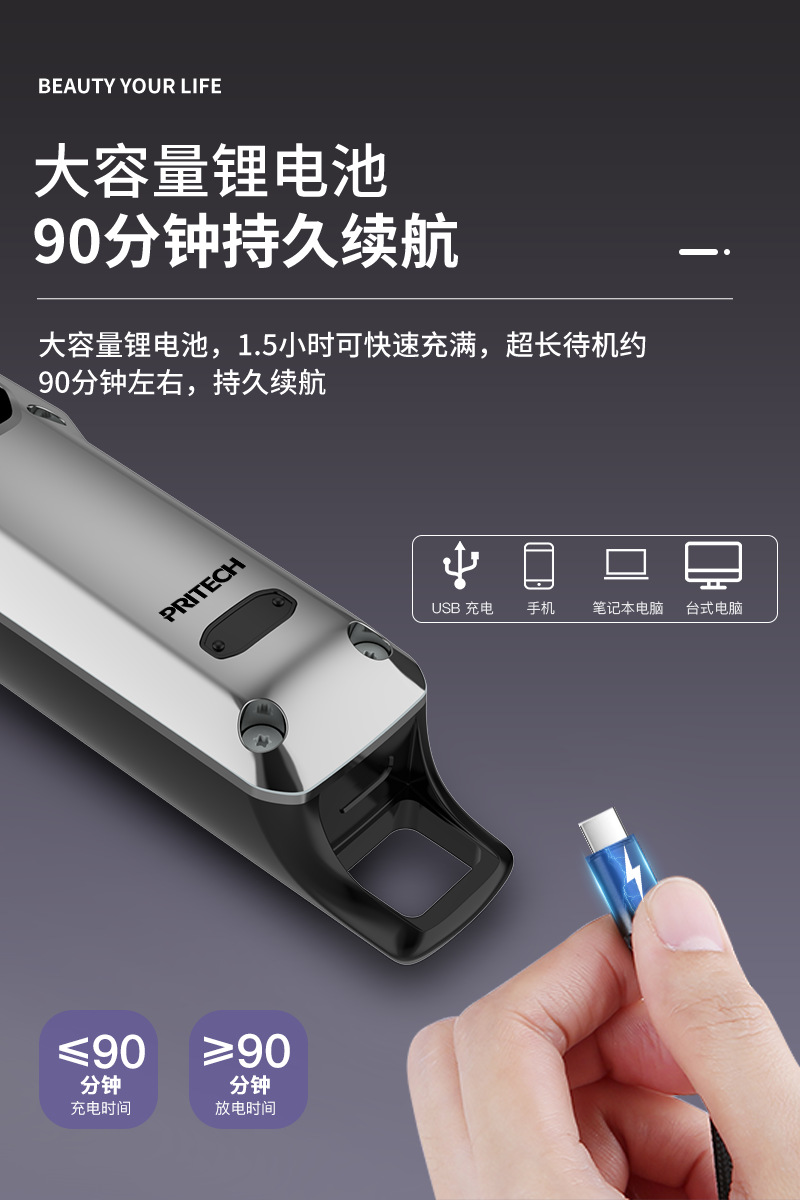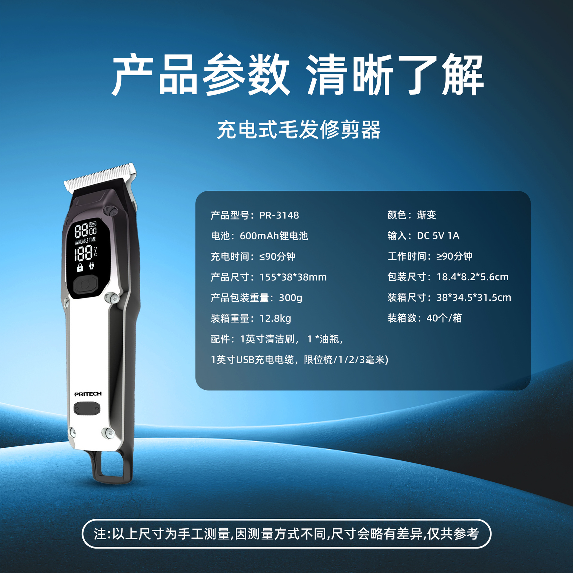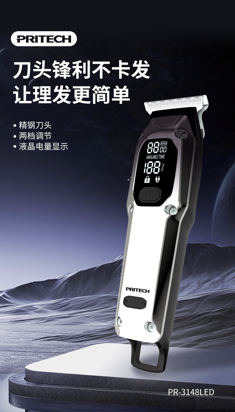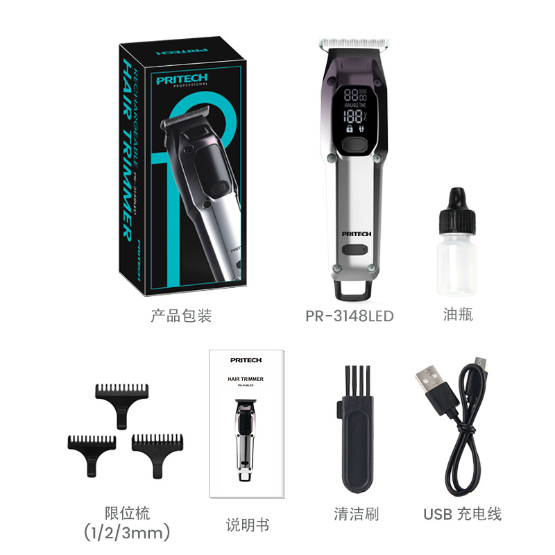 피치 전기 클리퍼 PR-3148 국경 새로운 LED LCD 디지털 디스플레이 헤어 클리퍼 USB 빠른 충전 헤어 살롱스토어 가기