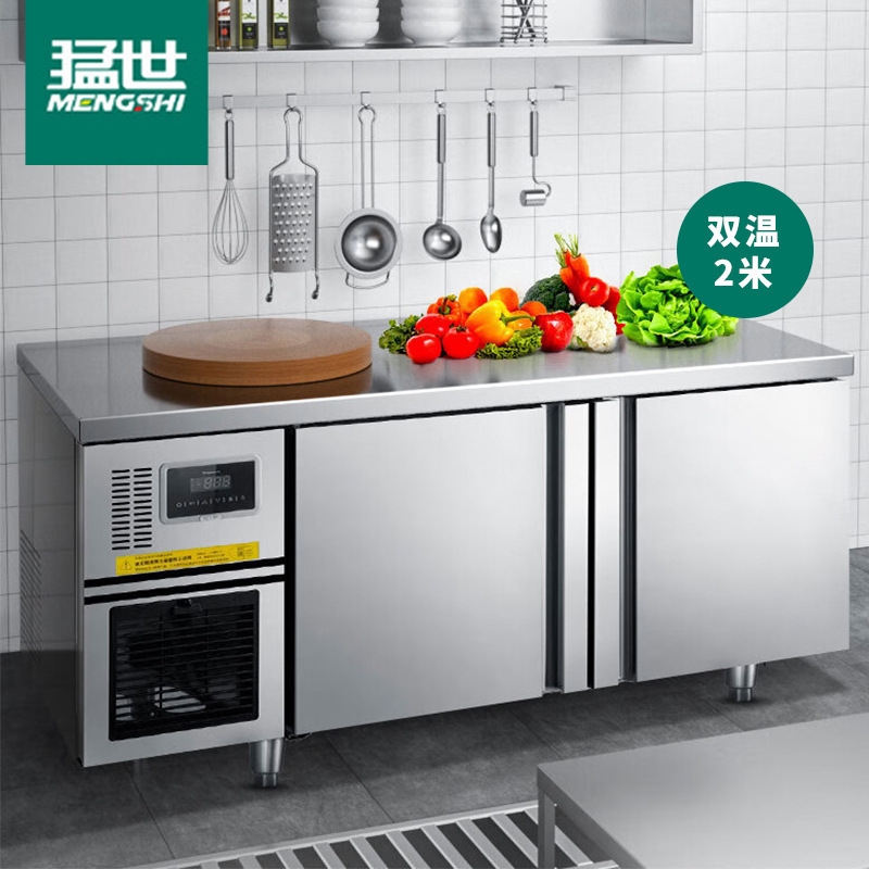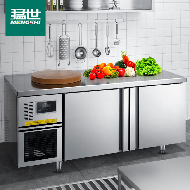 Mengshi 상업용 주방 냉동 냉장 작업대 공랭식 서리가없는 수평 냉동고 스테인레스 스틸스토어 가기