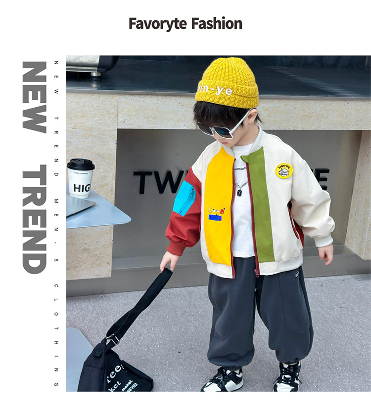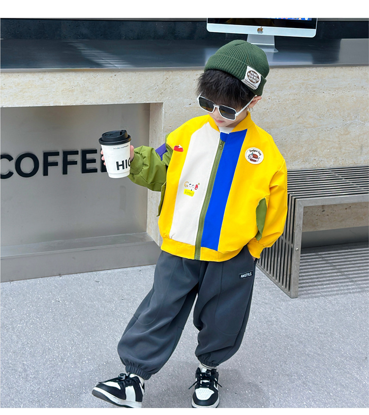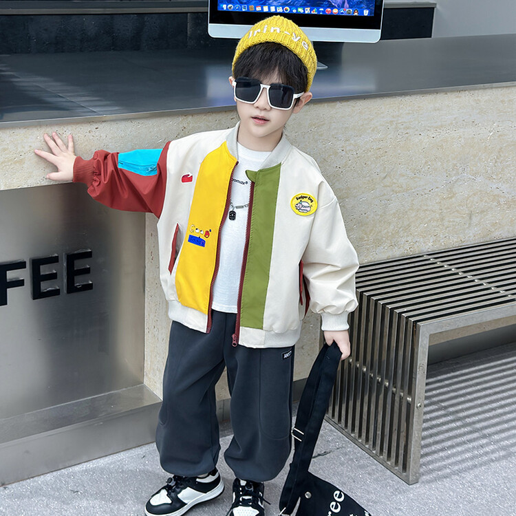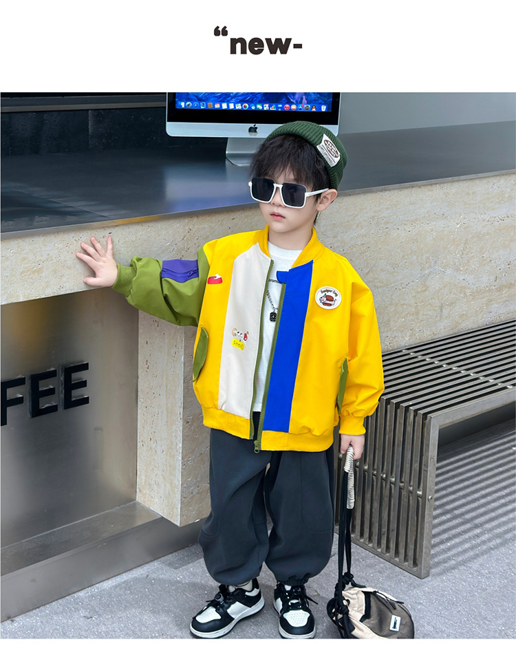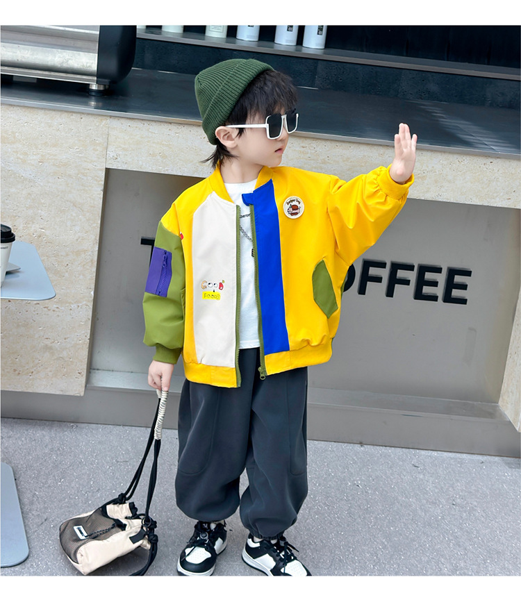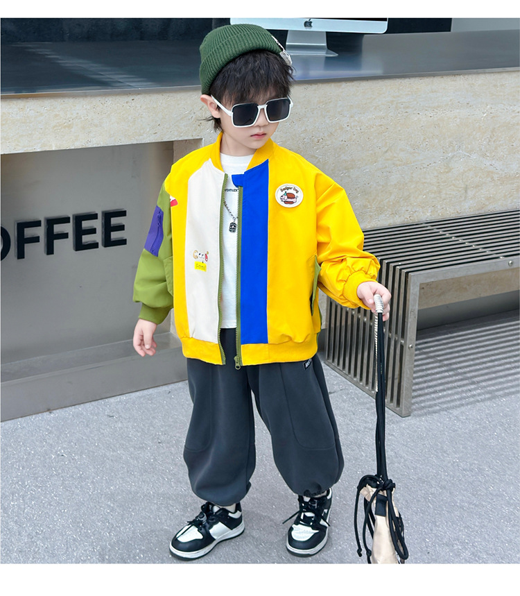 소년 컬러 블록 배트맨 코트 봄과 가을 어린이 잘 생긴 캐주얼 재킷 2024 새로운 아기 세련된 탑스토어 가기