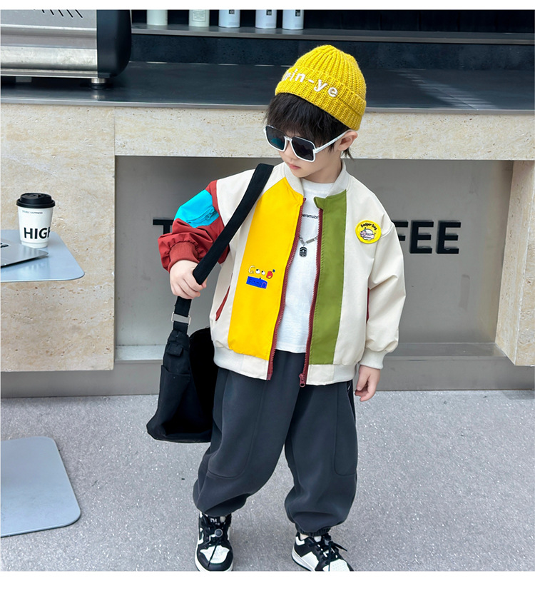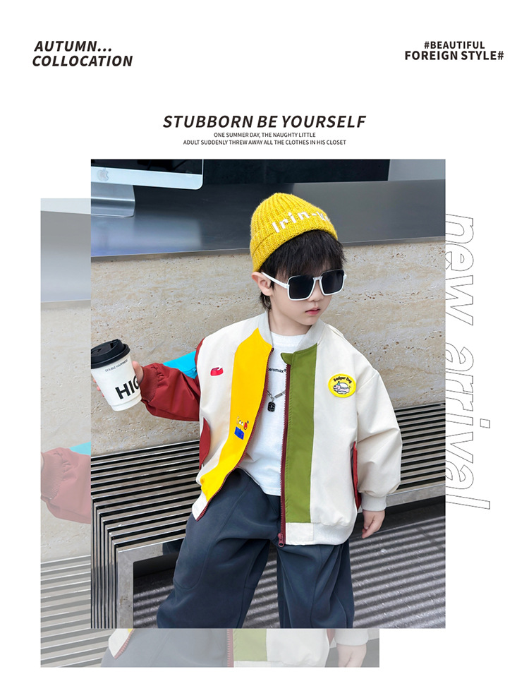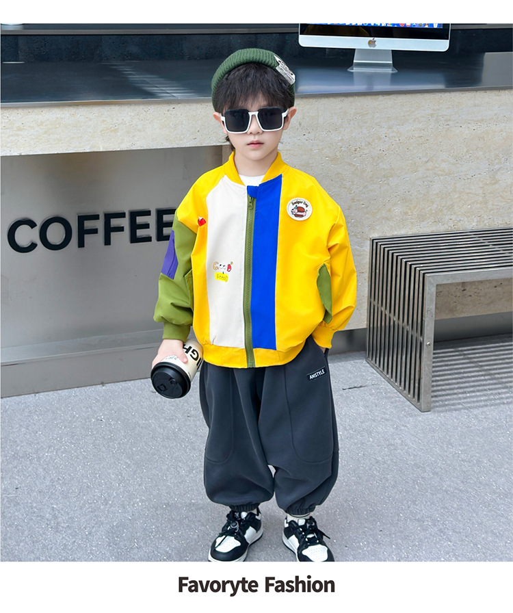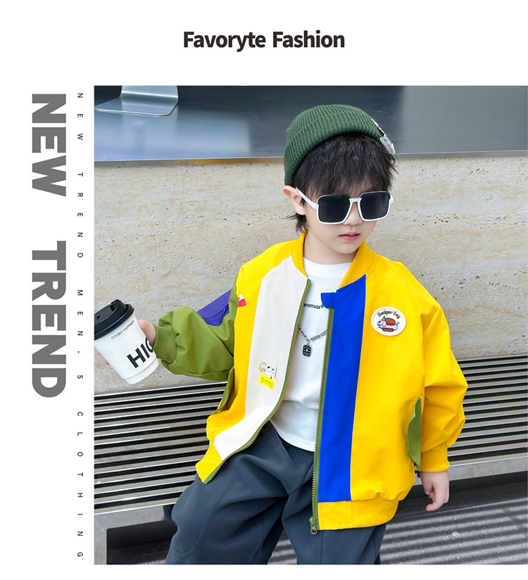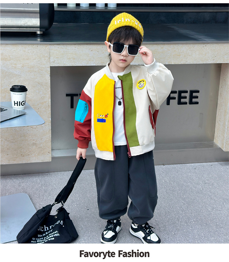 소년 컬러 블록 배트맨 코트 봄과 가을 어린이 잘 생긴 캐주얼 재킷 2024 새로운 아기 세련된 탑스토어 가기