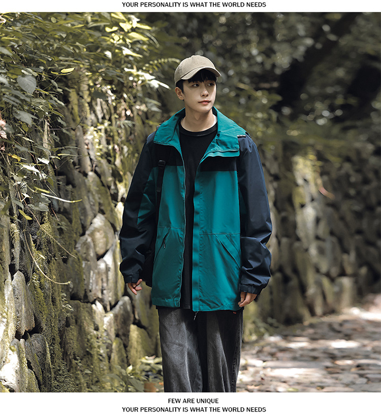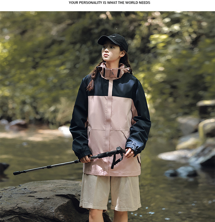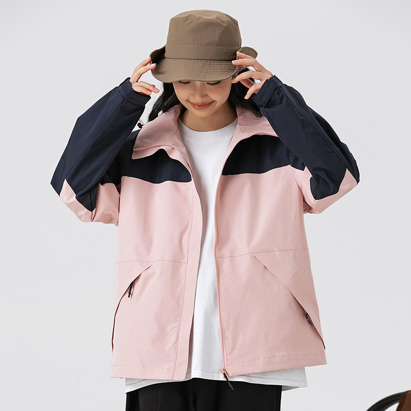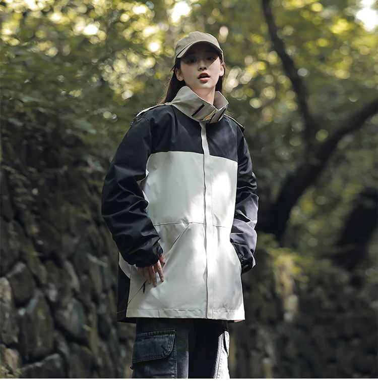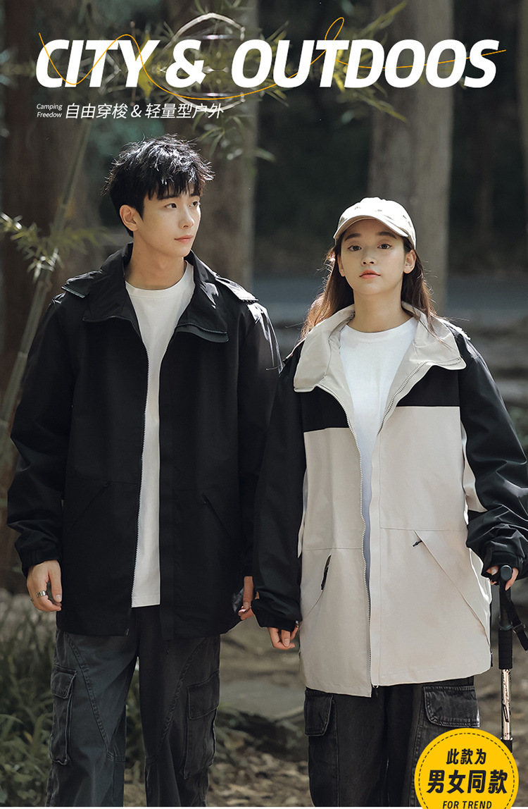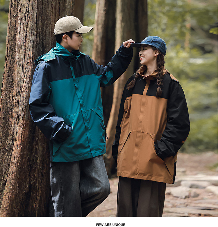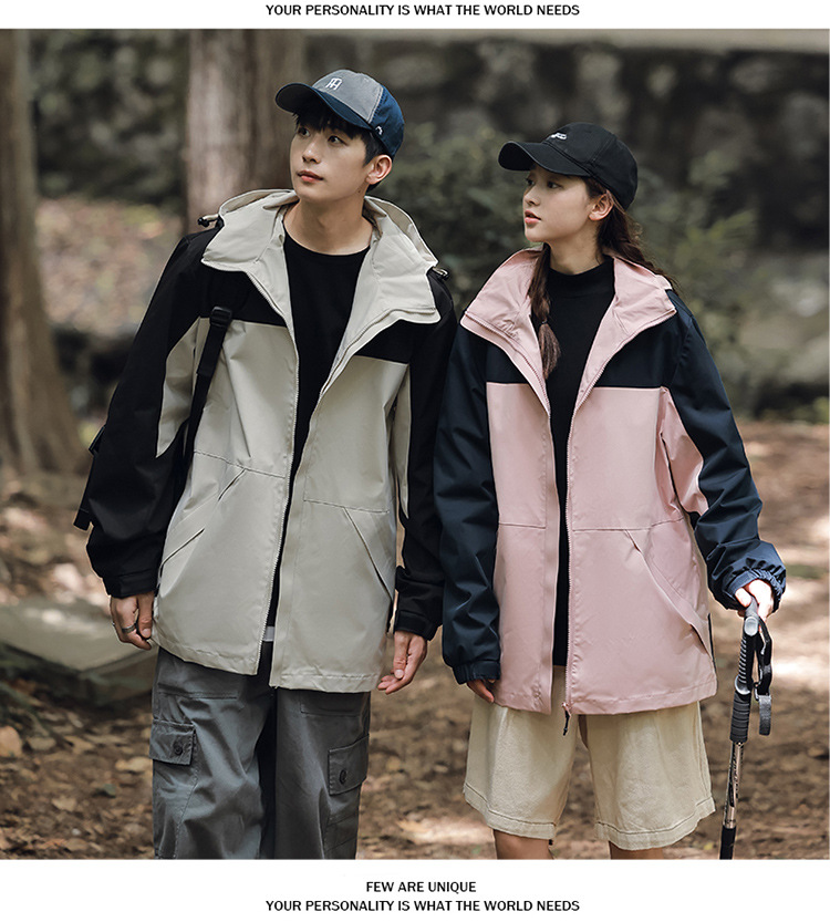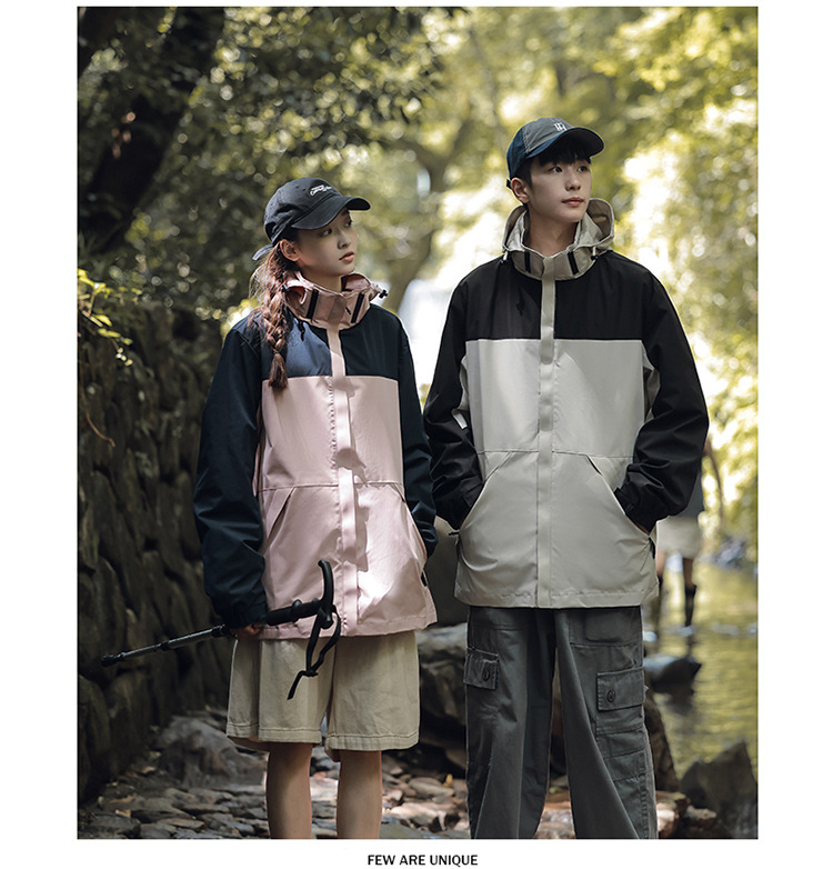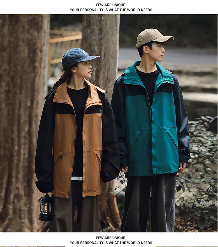 가을 2024 남성과 여성을위한 새로운 도착 자켓 야외 커플 컬러 블록 재킷 이동식 캡 방수 방풍 재킷 남성용스토어 가기
