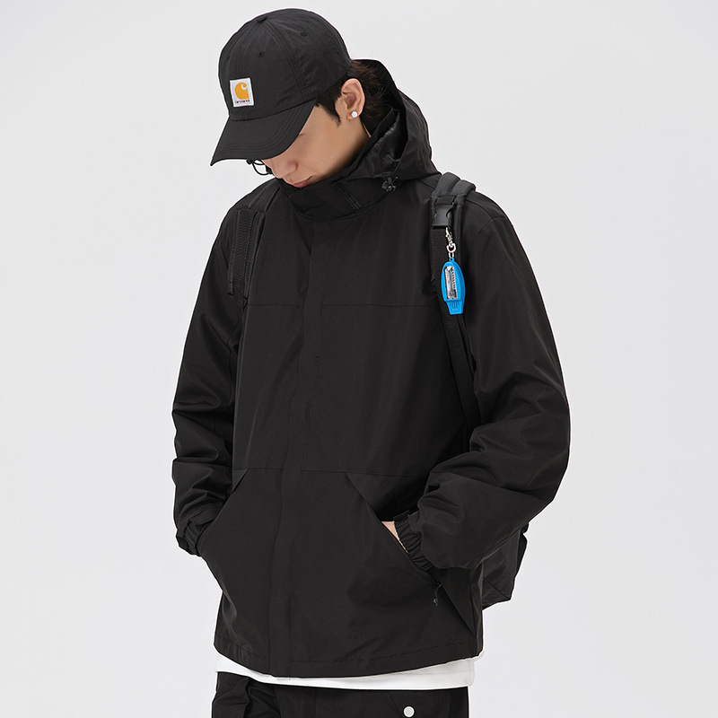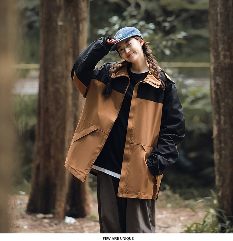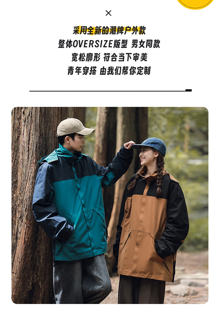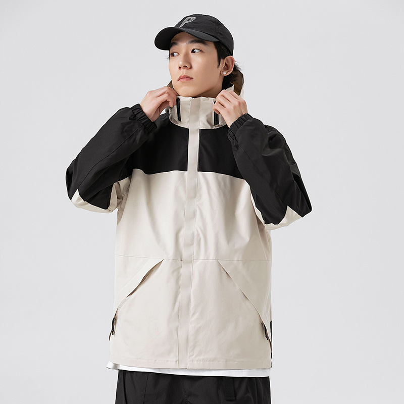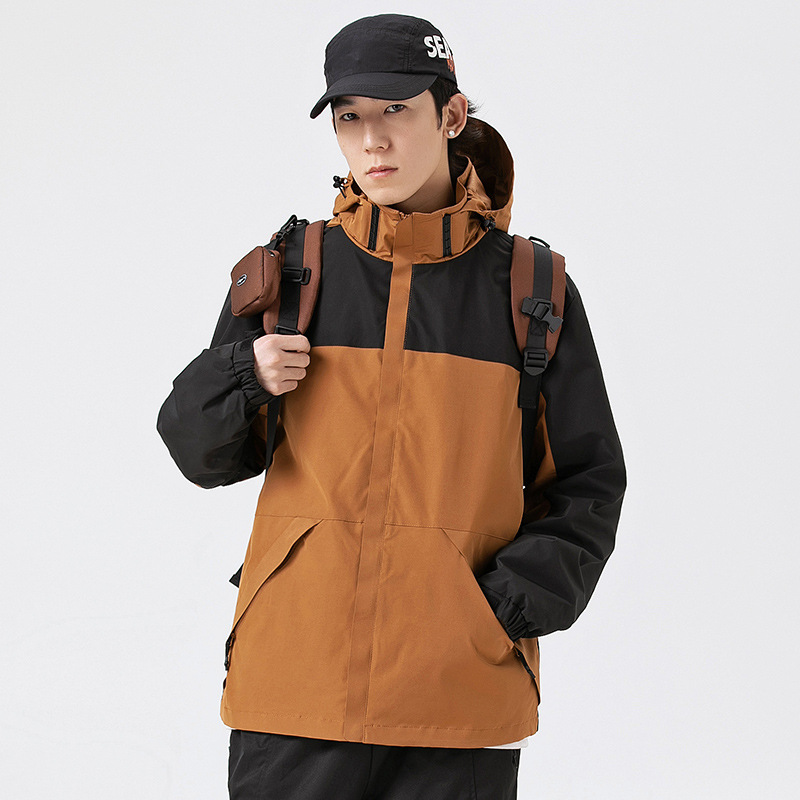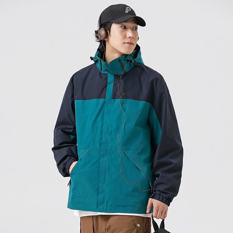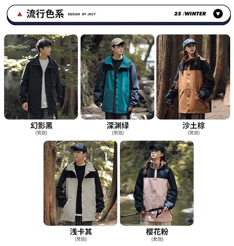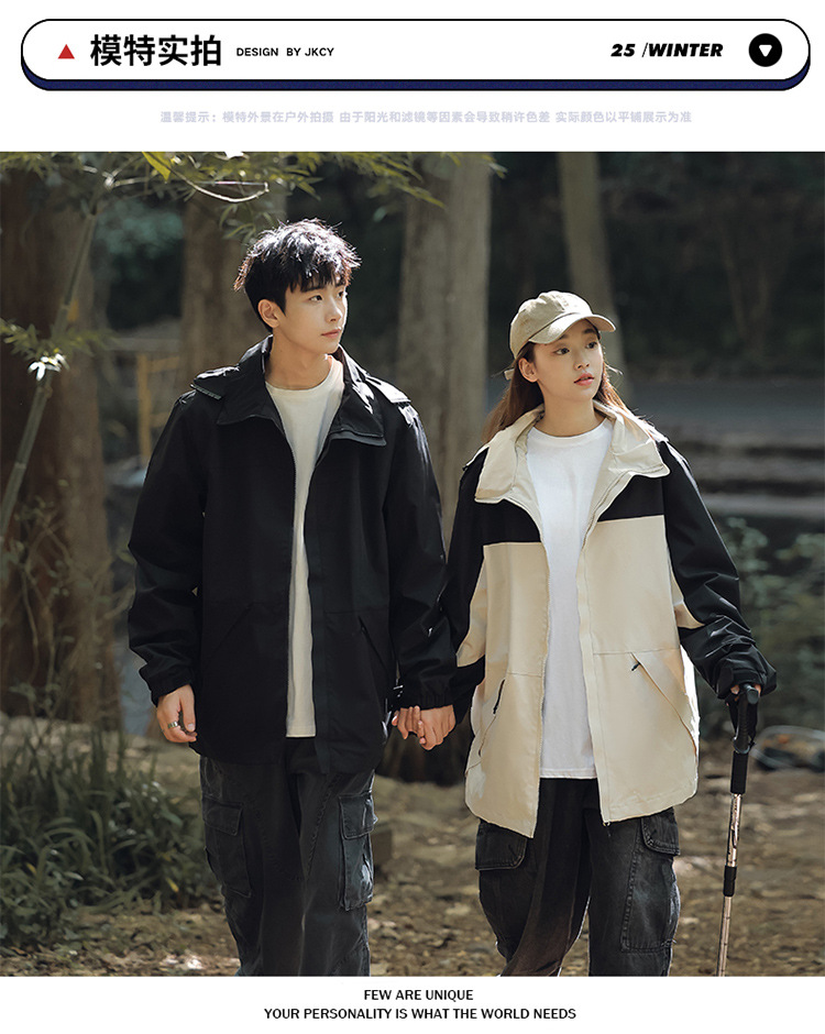가을 2024 남성과 여성을위한 새로운 도착 자켓 야외 커플 컬러 블록 재킷 이동식 캡 방수 방풍 재킷 남성용스토어 가기