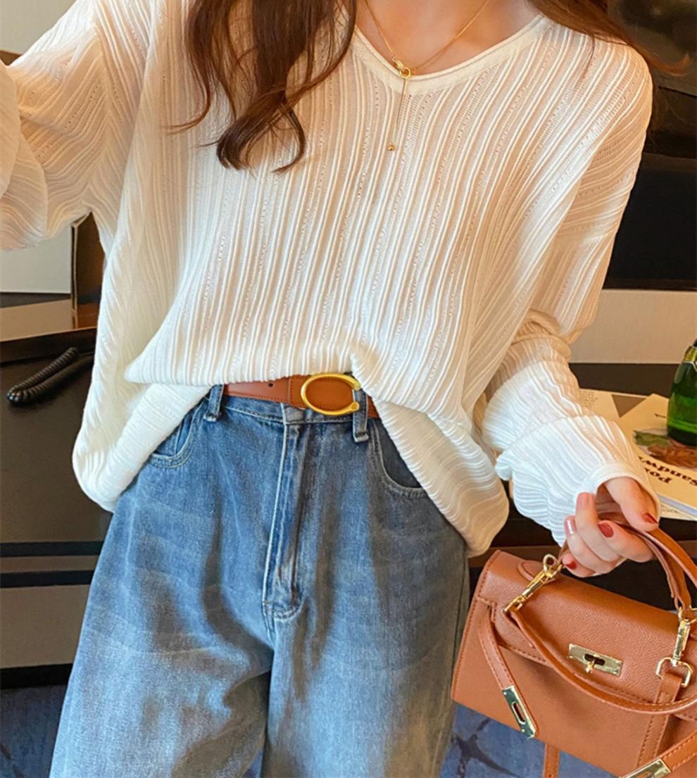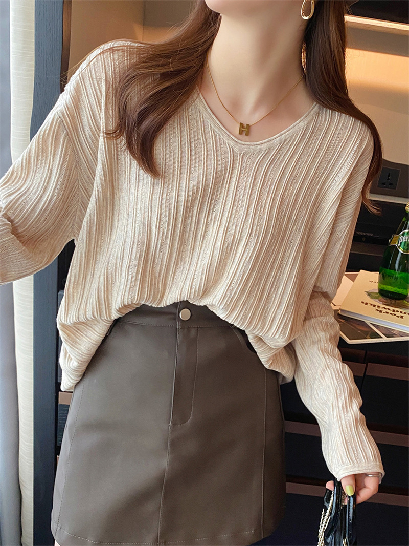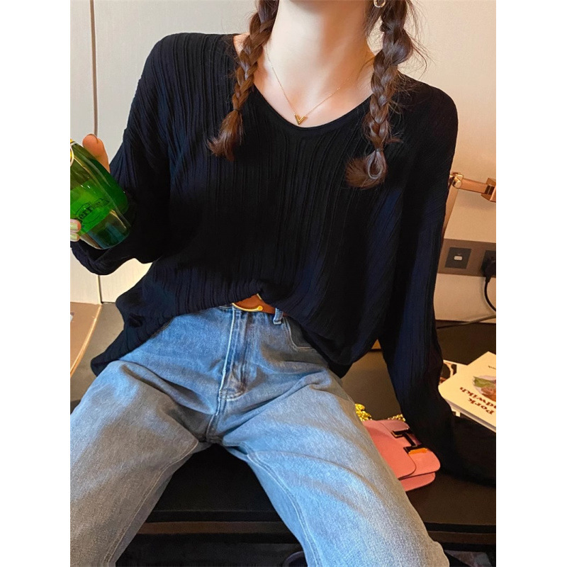 여성용 라글란 슬리브 니트웨어 가을과 겨울 새로운 느슨한 슬리밍 연령 감소 색상 매칭 긴 소매 풀오버베이스 셔츠 티셔츠