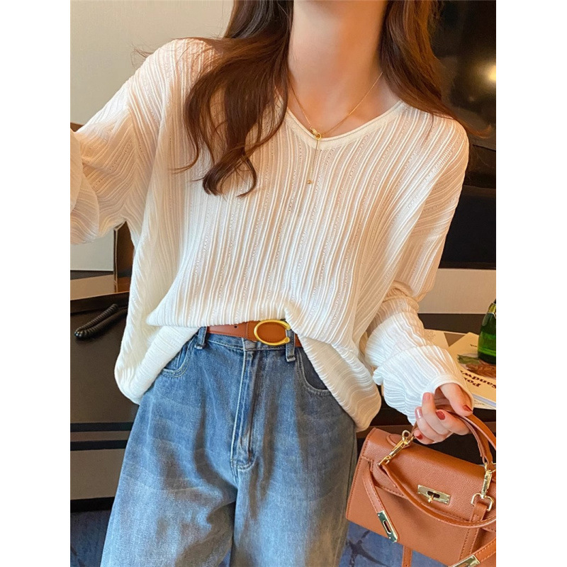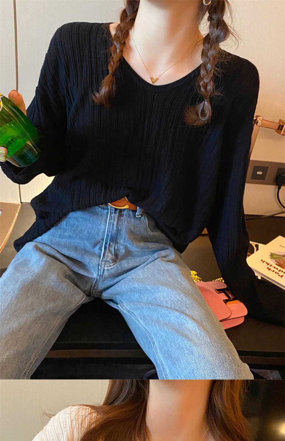 여성용 라글란 슬리브 니트웨어 가을과 겨울 새로운 느슨한 슬리밍 연령 감소 색상 매칭 긴 소매 풀오버베이스 셔츠 티셔츠스토어 가기