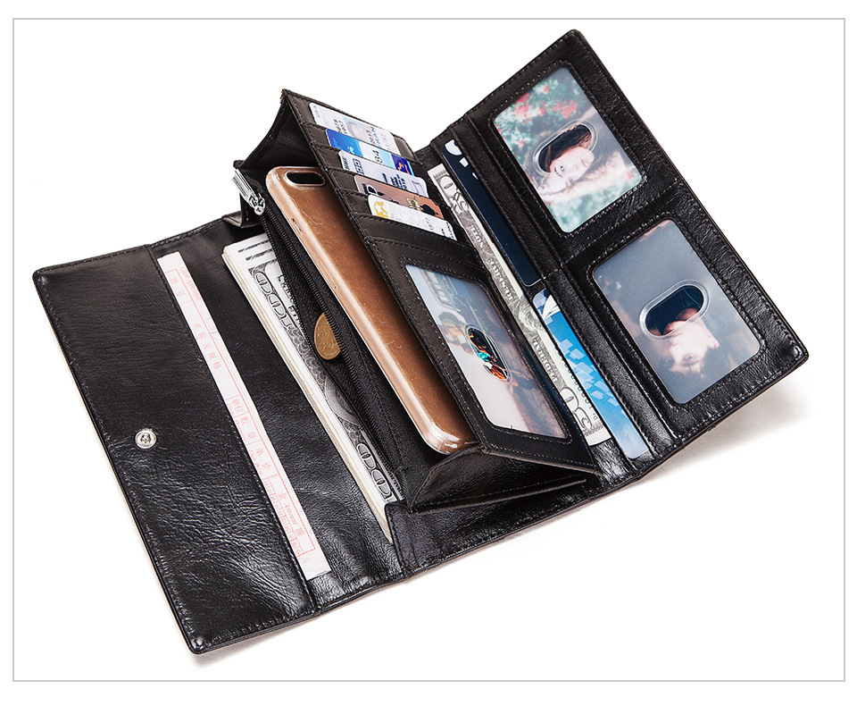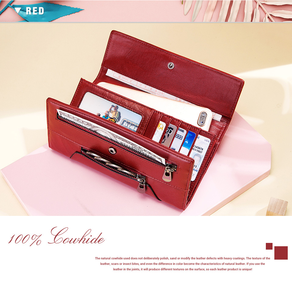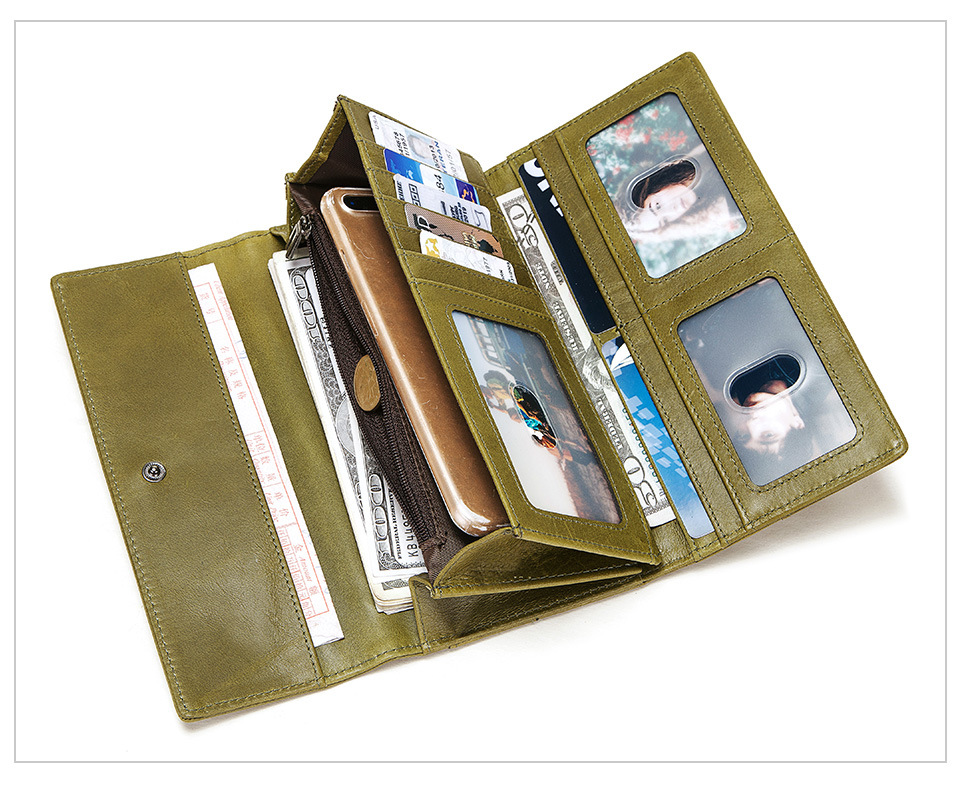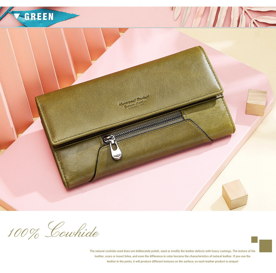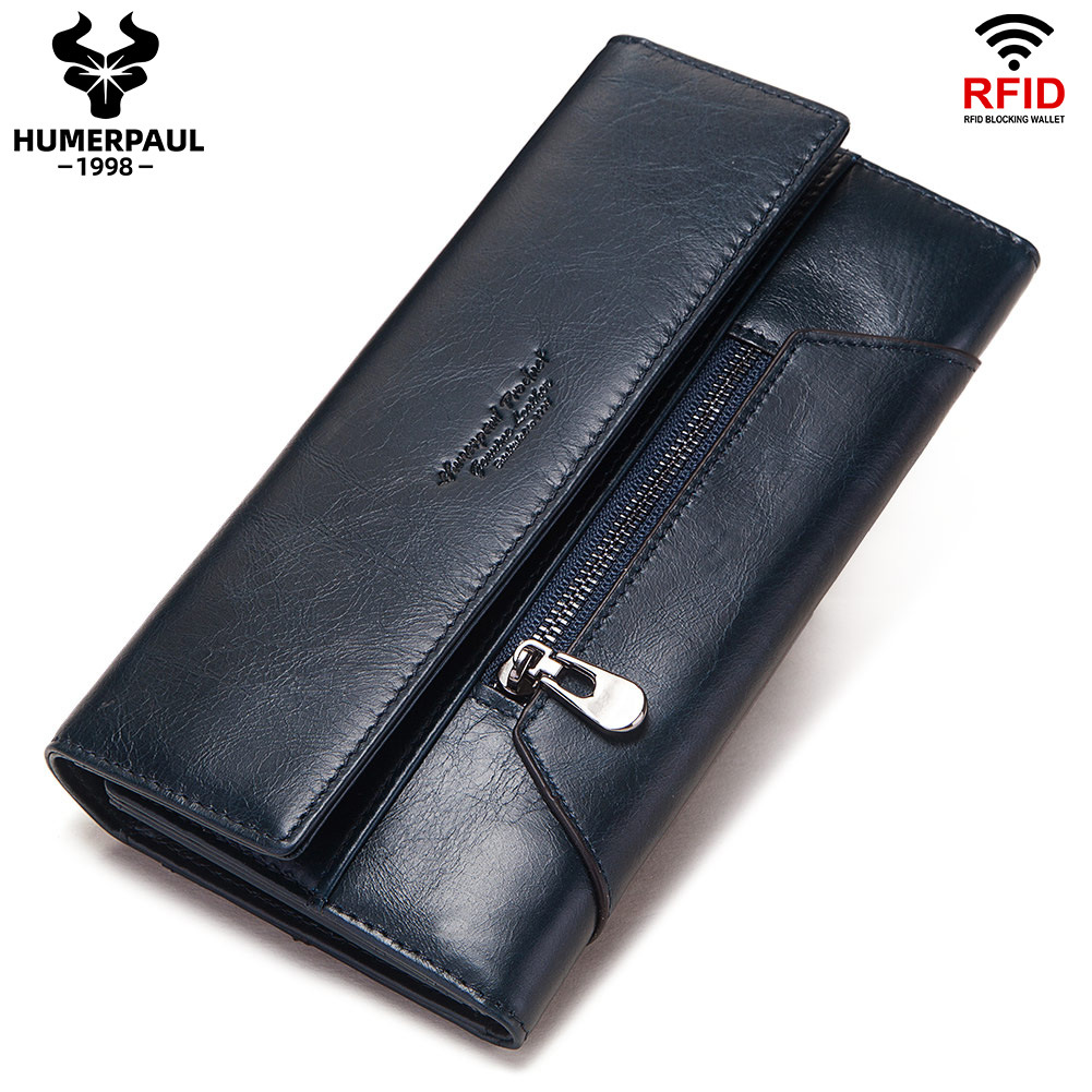허머 폴 정품 가죽 여성용 지갑 긴 탑 레이어 카우보이 RFID 멀티 카드 클러치 백 여성의 휴대 전화 가방 크로스 테두리