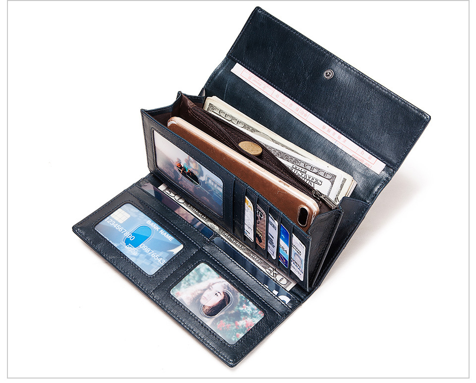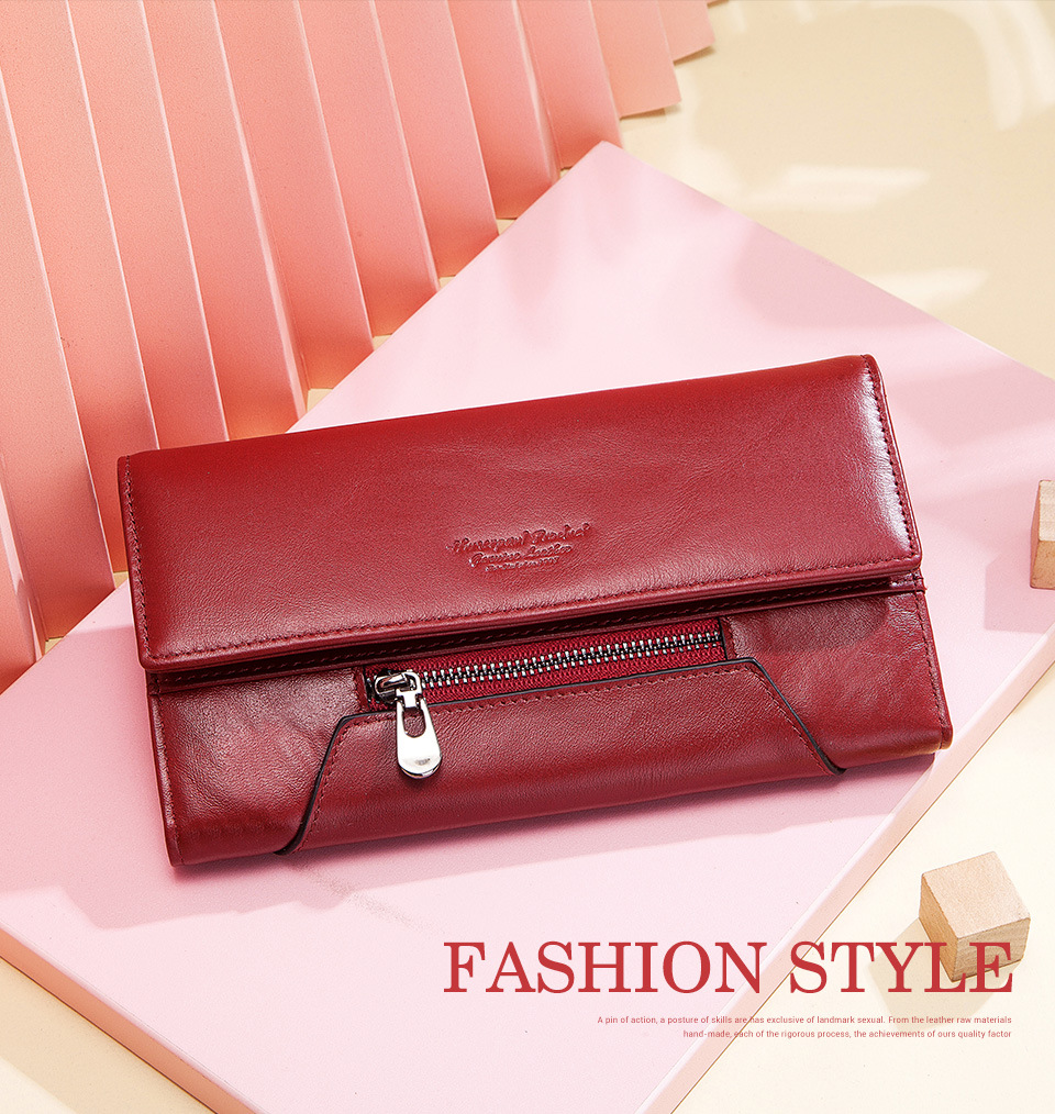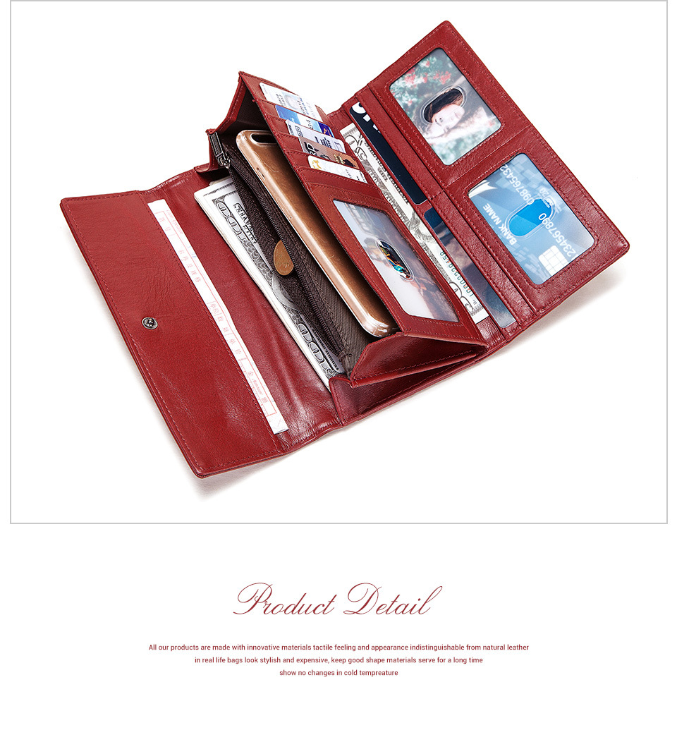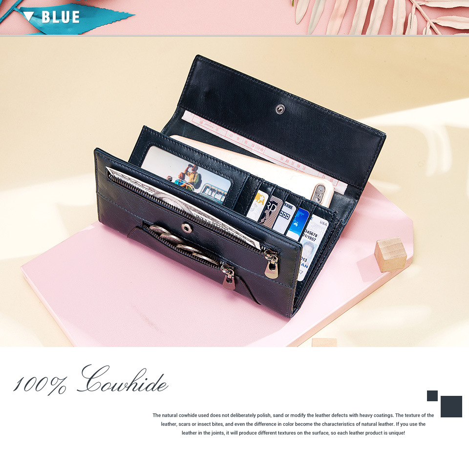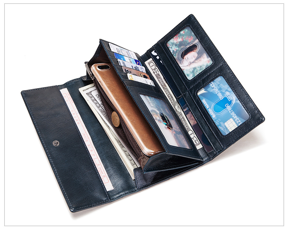 허머 폴 정품 가죽 여성용 지갑 긴 탑 레이어 카우보이 RFID 멀티 카드 클러치 백 여성의 휴대 전화 가방 크로스 테두리