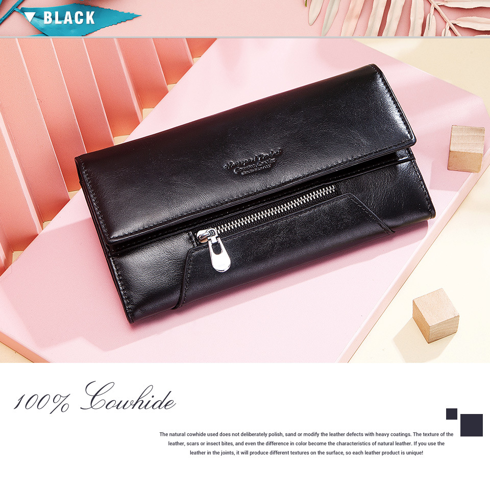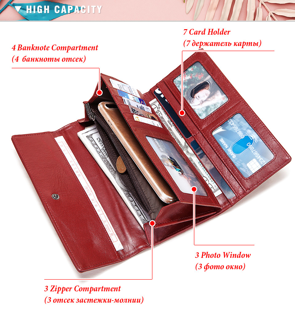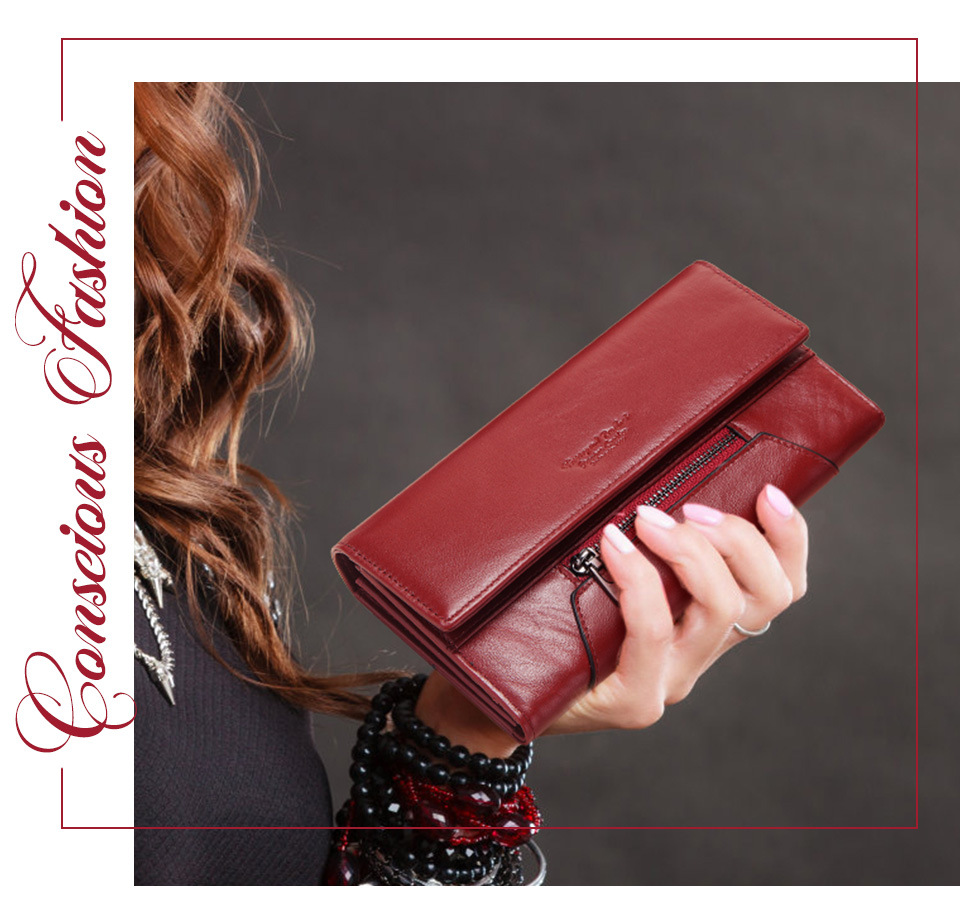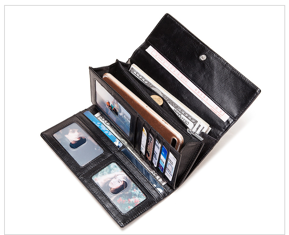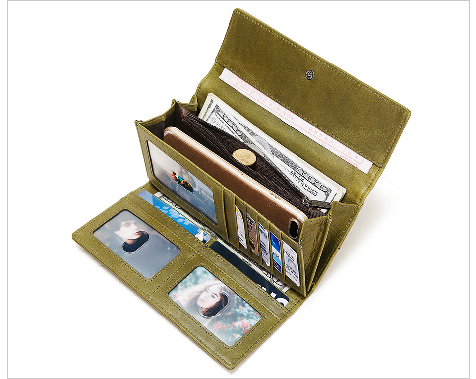허머 폴 정품 가죽 여성용 지갑 긴 탑 레이어 카우보이 RFID 멀티 카드 클러치 백 여성의 휴대 전화 가방 크로스 테두리