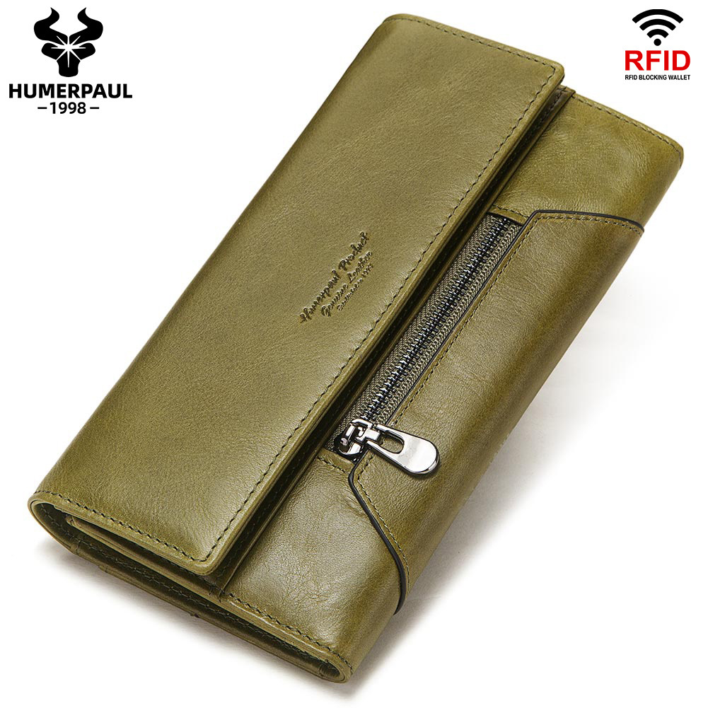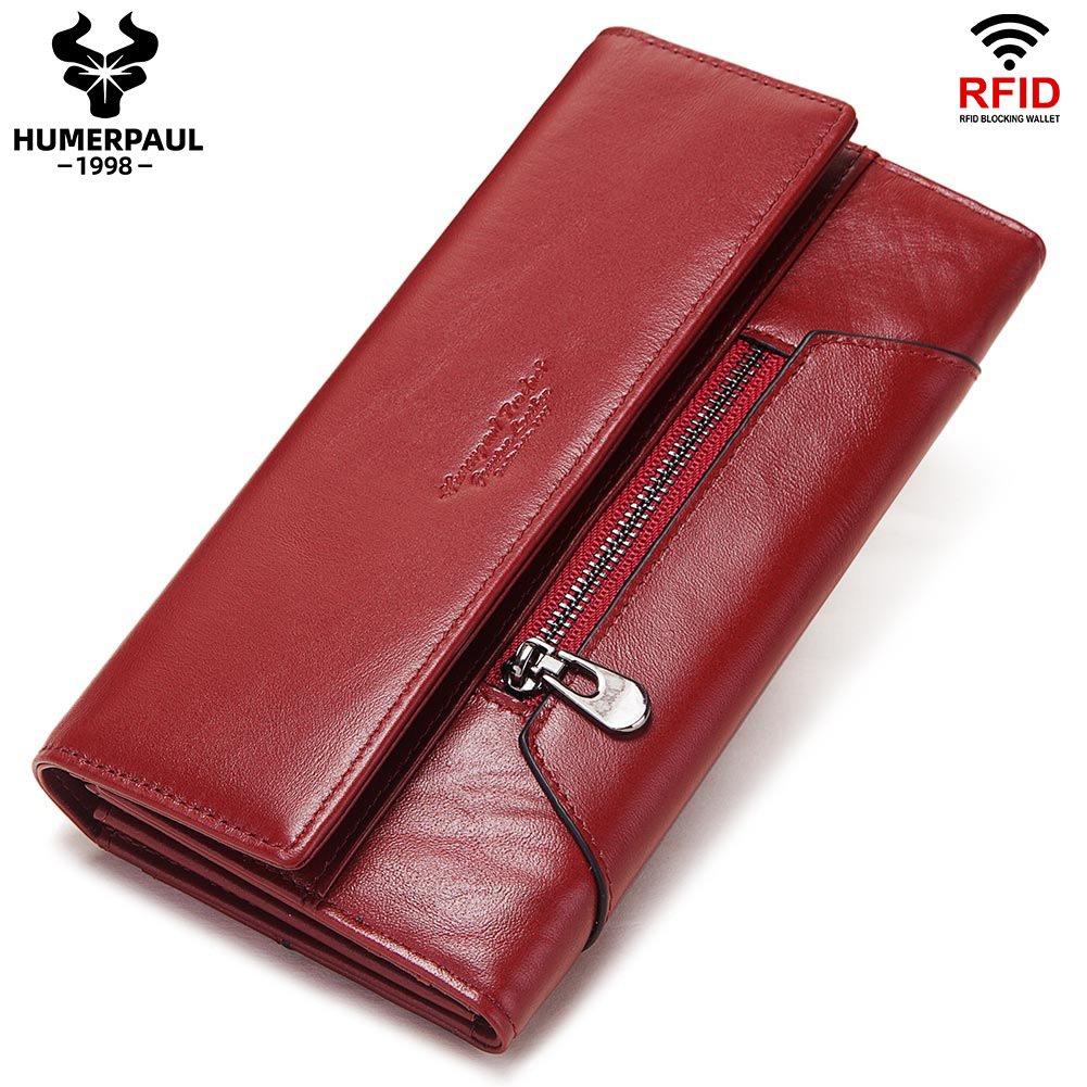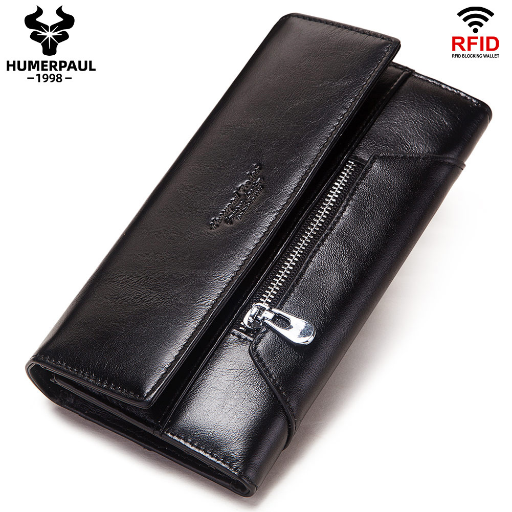 허머 폴 정품 가죽 여성용 지갑 긴 탑 레이어 카우보이 RFID 멀티 카드 클러치 백 여성의 휴대 전화 가방 크로스 테두리스토어 가기
