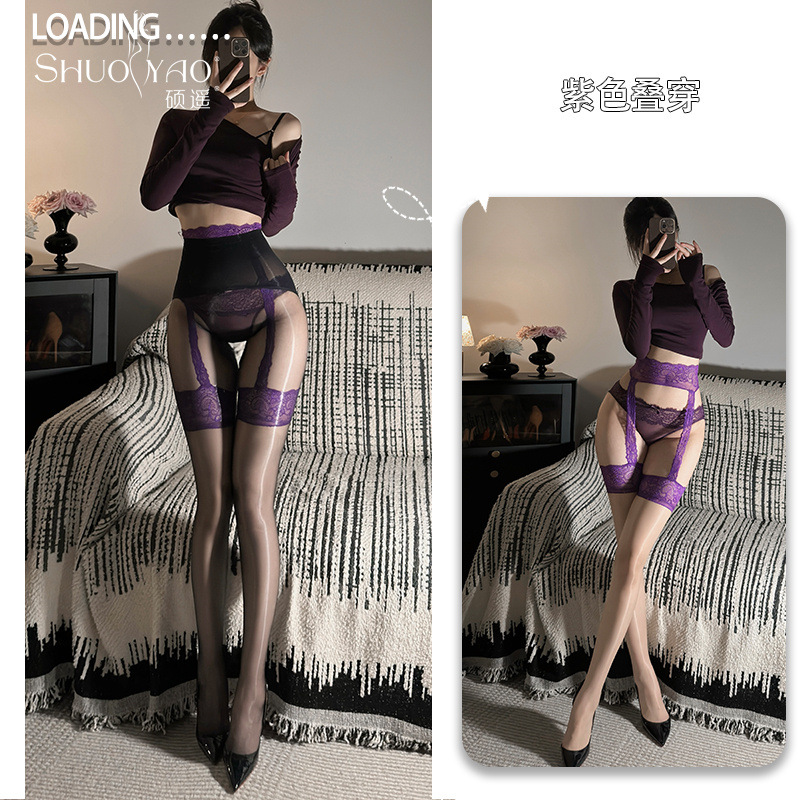 Shuo Yao Aurora 보라색 실크 스타킹 레이스 스타킹 섹시한 오일 라이트 순수 욕망 헤어 A28 용 초박형 슬링 원 양말