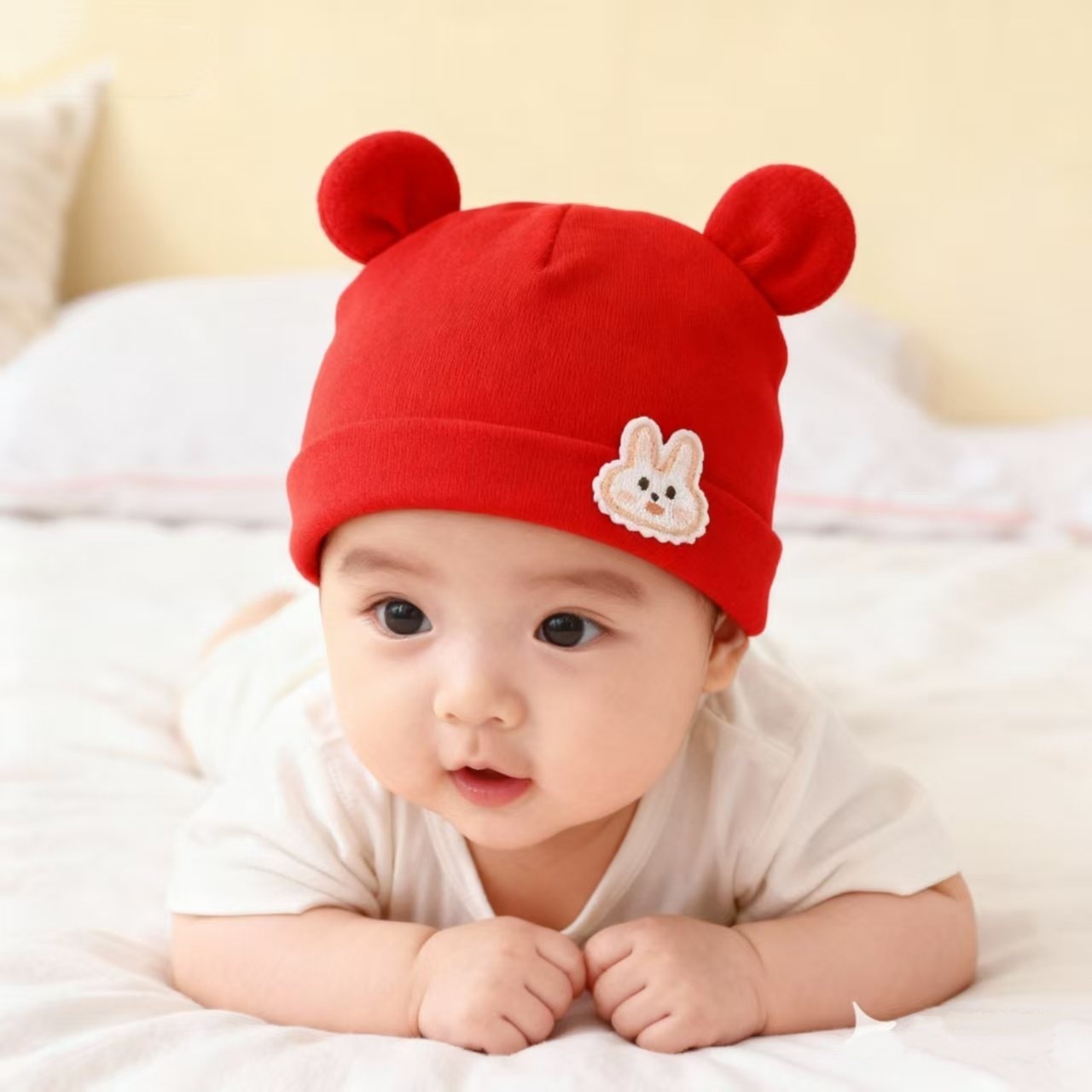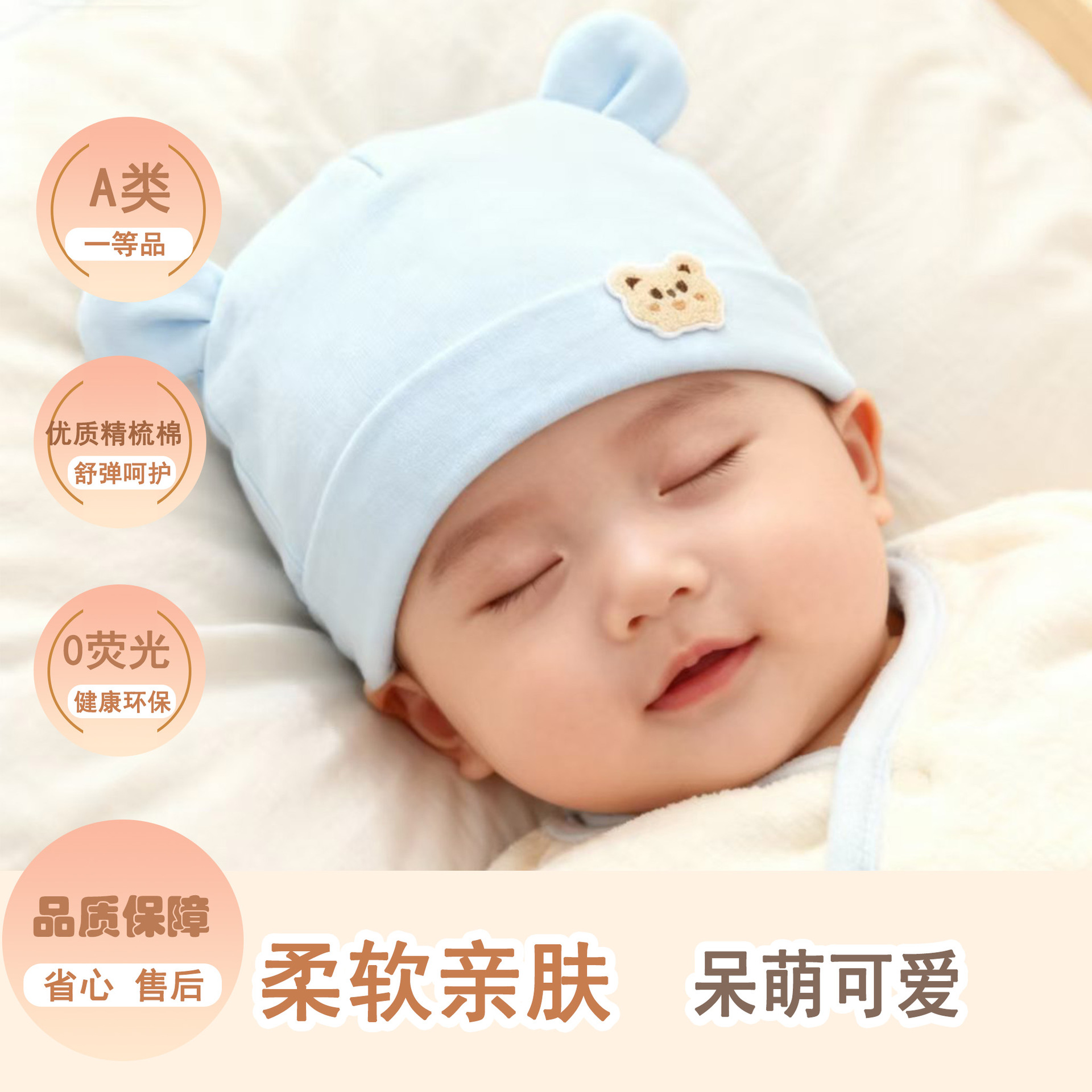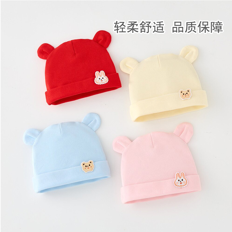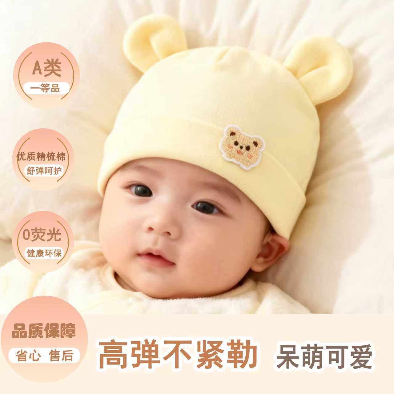 봄과 가을 신상 아기 모자, 유아용 A급 면 단층 얇은 모자, 신생아 귀여운 만화 모자, 방풍 둥근 모자스토어 가기