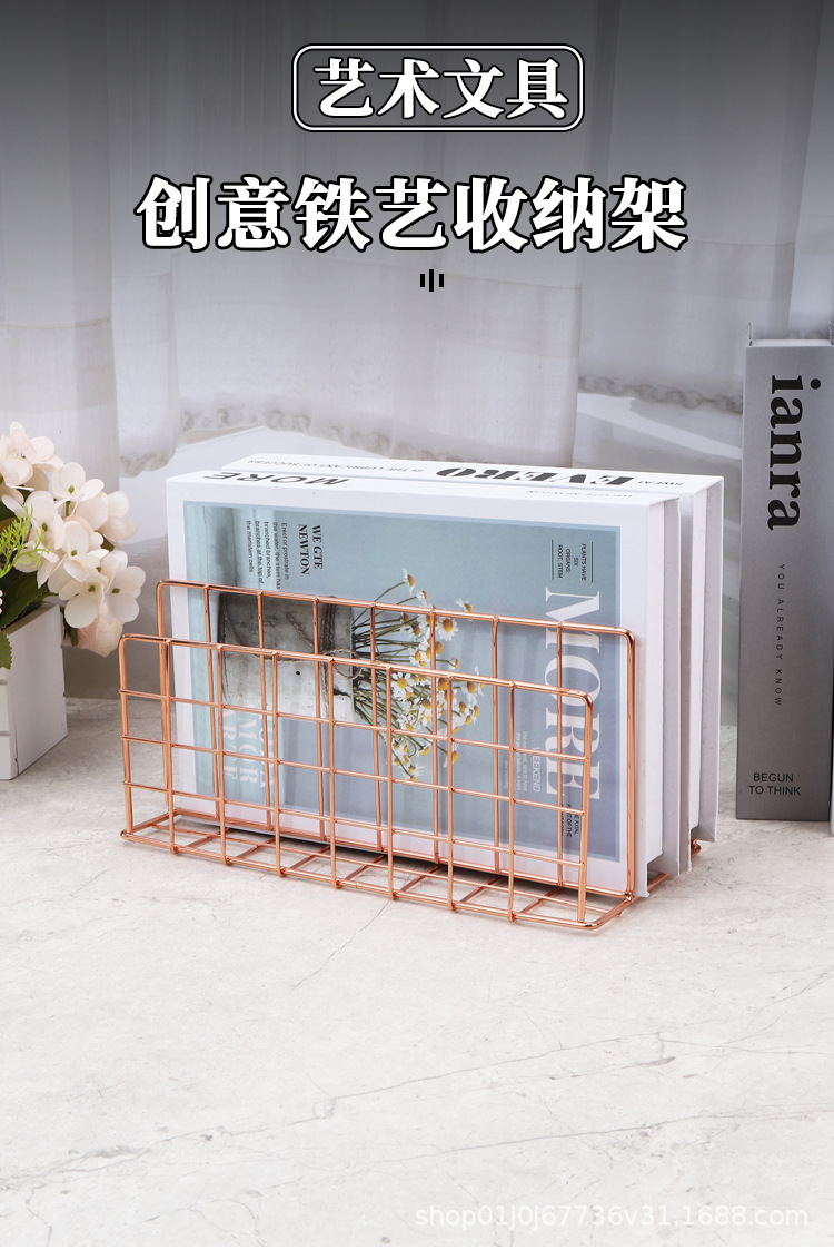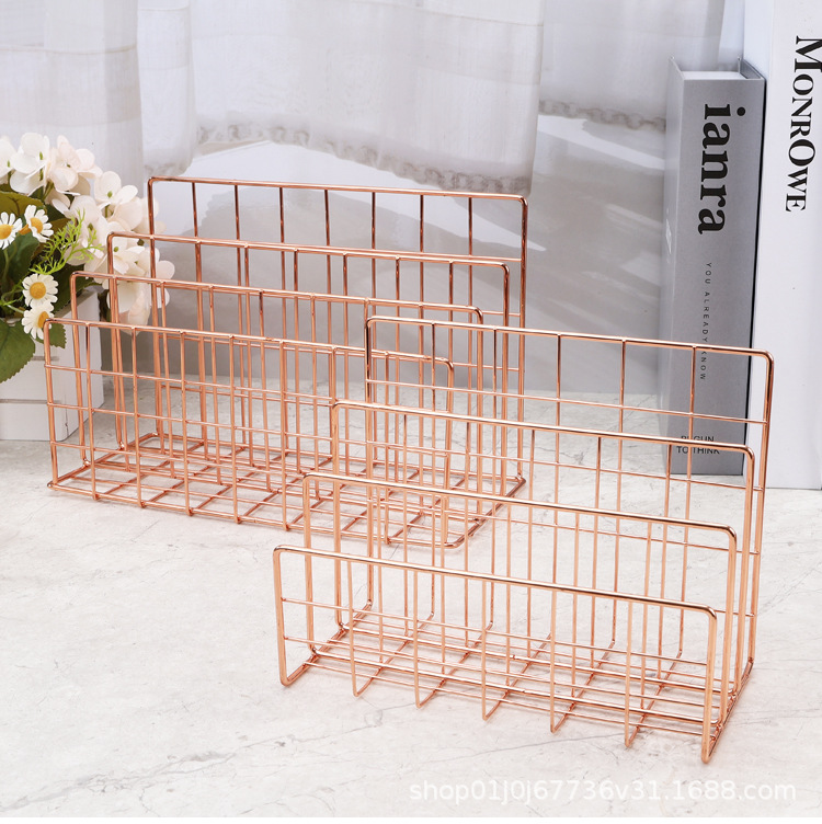 북유럽 스타일의 창조적 인 철 금속 3 그리드 책꽂이 데스크탑 장식 파일 책은 스토리지 랙 파일 랙을 구성합니다.