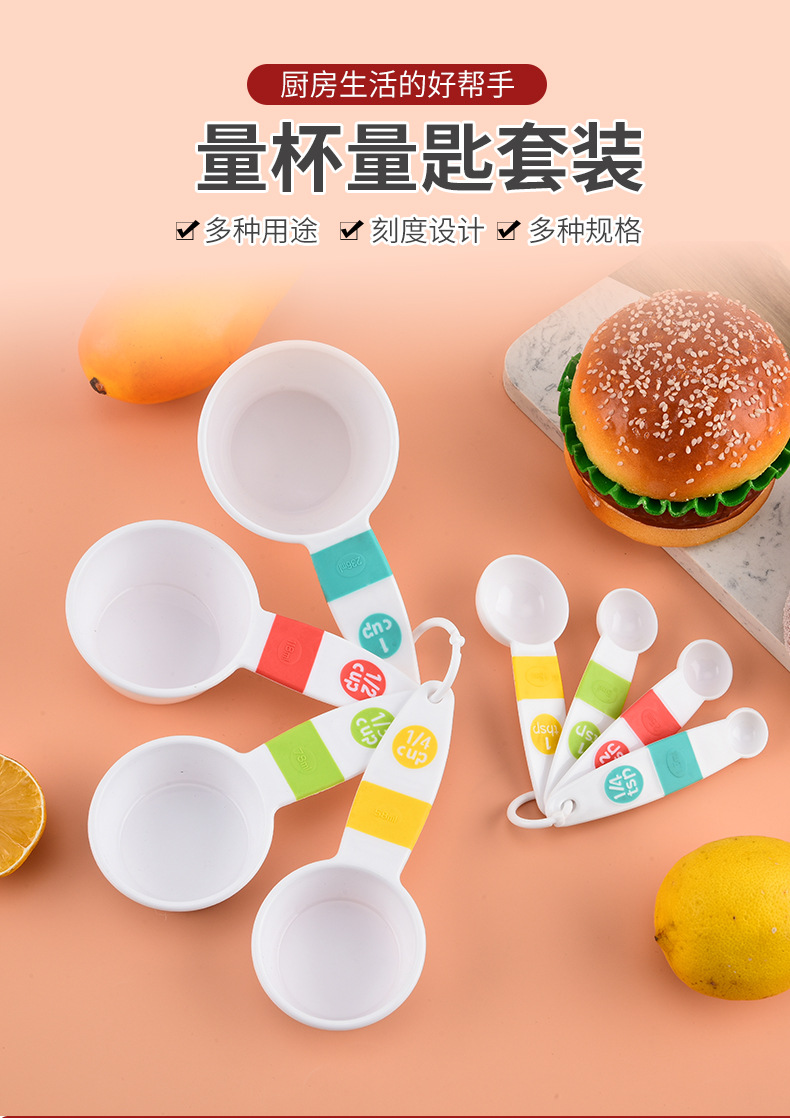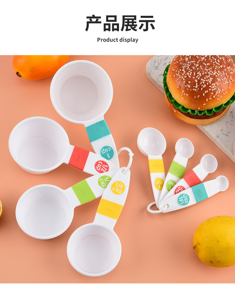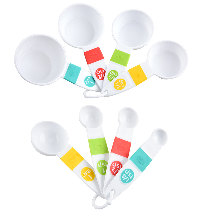 플라스틱 측정 숟가락 측정 컵 세트 가정용 베이킹 컬러 우유 가루 숟가락 커피 숟가락 조미료 스푼 8 개 세트