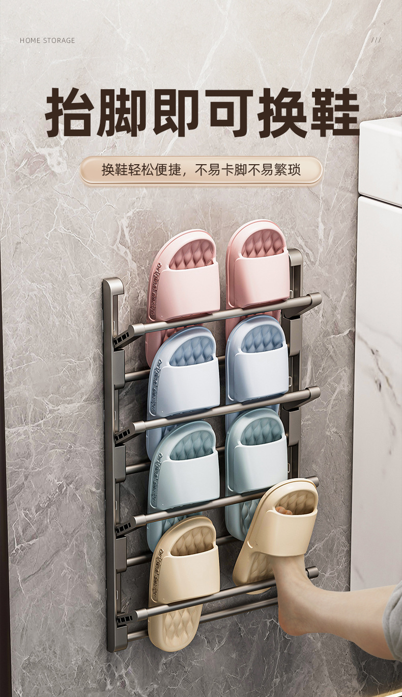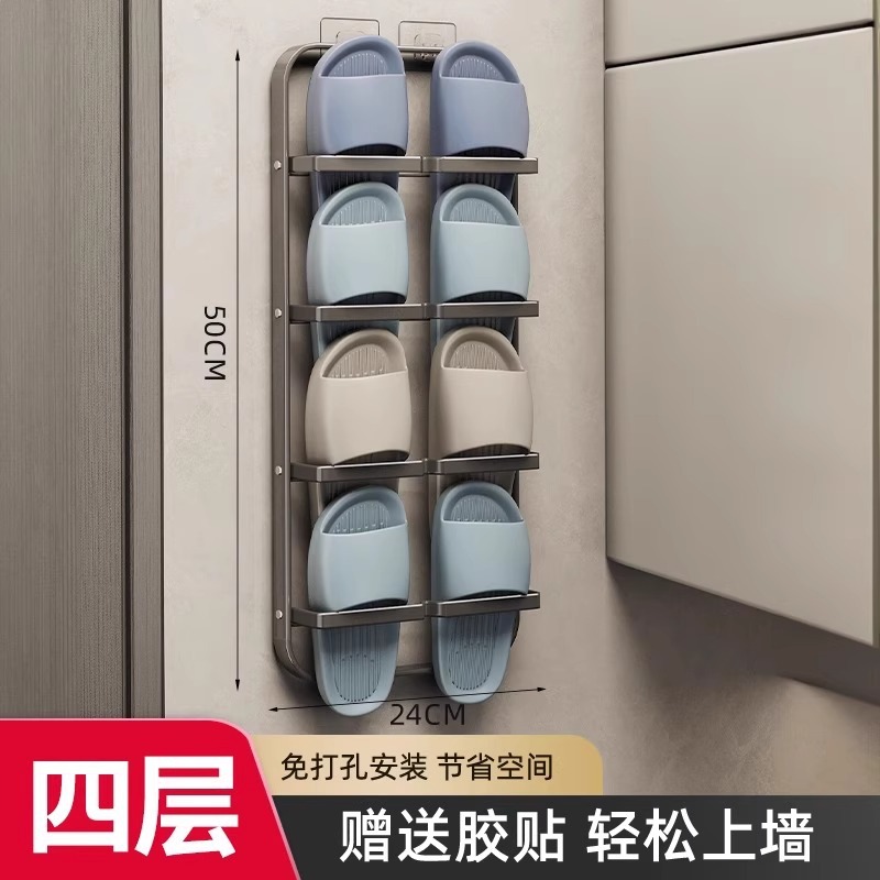 욕실 슬랫 랙 펀치 프리 화장실 신발 보관 아티팩트 벽 매달려 가정용 도어 교수형 랙 그리기 교수형 랙스토어 가기
