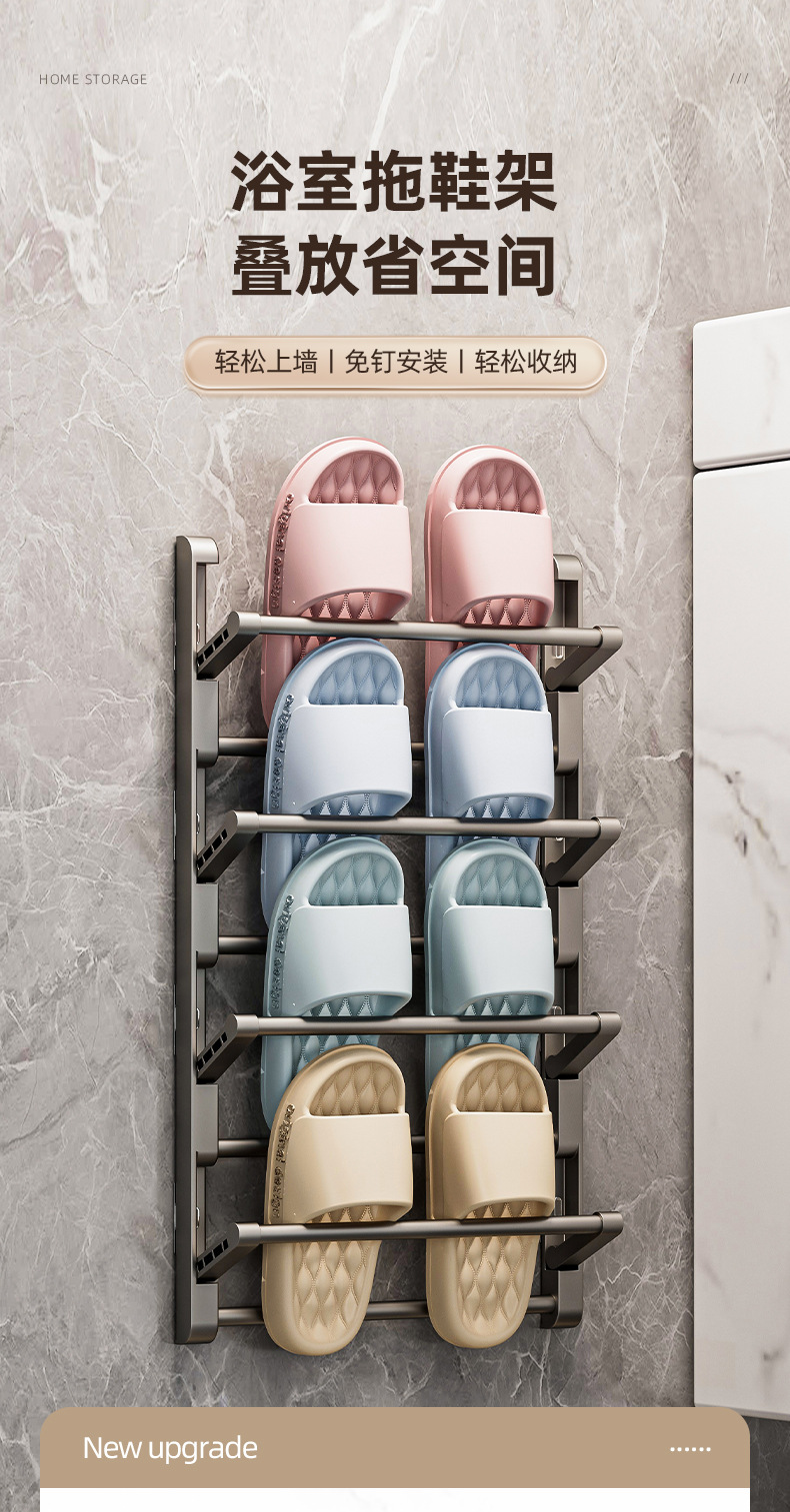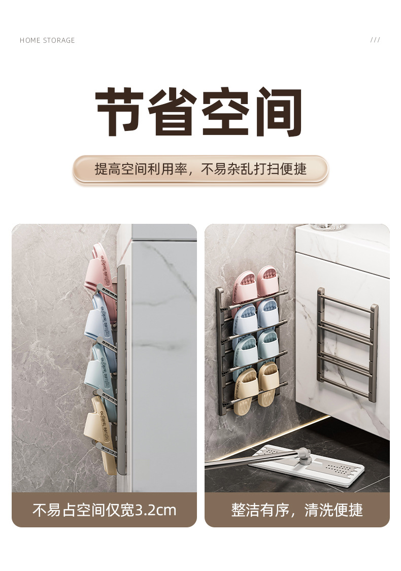 욕실 슬랫 랙 펀치 프리 화장실 신발 보관 아티팩트 벽 매달려 가정용 도어 교수형 랙 그리기 교수형 랙