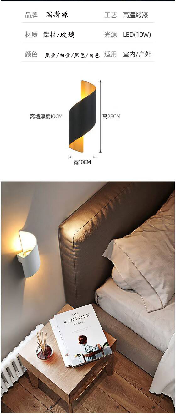 야외 방수 S 자형 작은 허리 간단한 Led 벽 램프 현대 거실 마스터 침실 침실 라이트 럭셔리 호텔 거실 벽