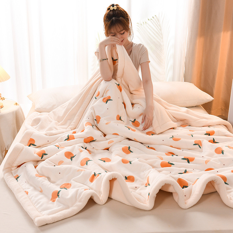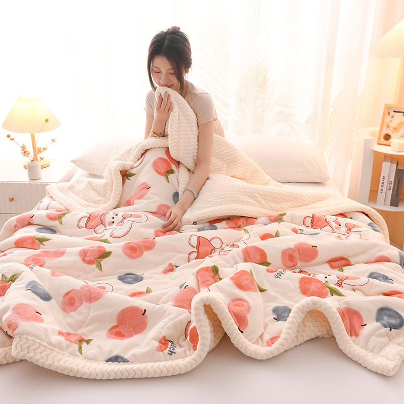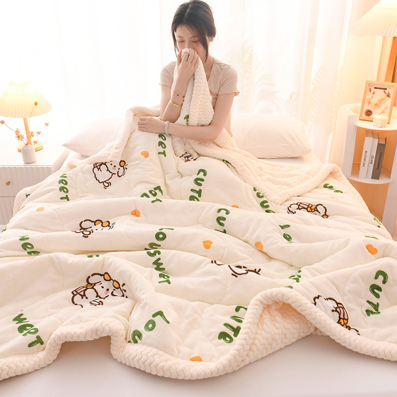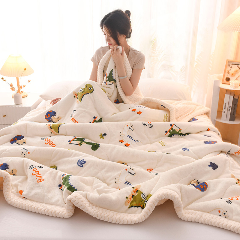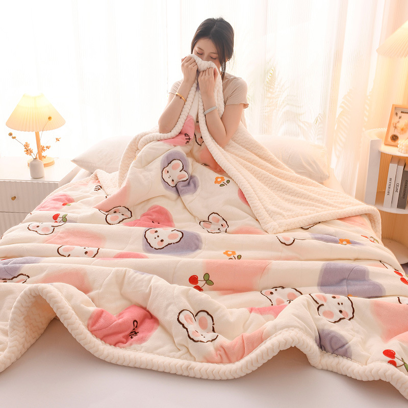 만화 담요 겨울용 두꺼운 누빔 담요 이불 낮잠용 산호색 밀크벨벳 소형 담요 사무실 소파 담요